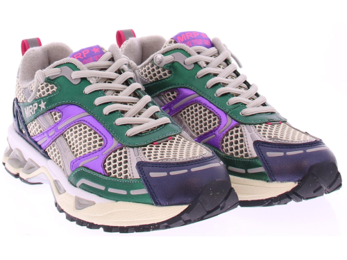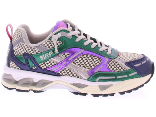 Multicoloured leather with mesh women's sneaker by Maripe. These sneakers are made of dark blue, green and purple leather with panels in coarse mesh. The lining is made of soft textile, making them wonderfully comfortable. The rubber sole offers excellent grip and support. The footbed is replaceable for your own personal insole.