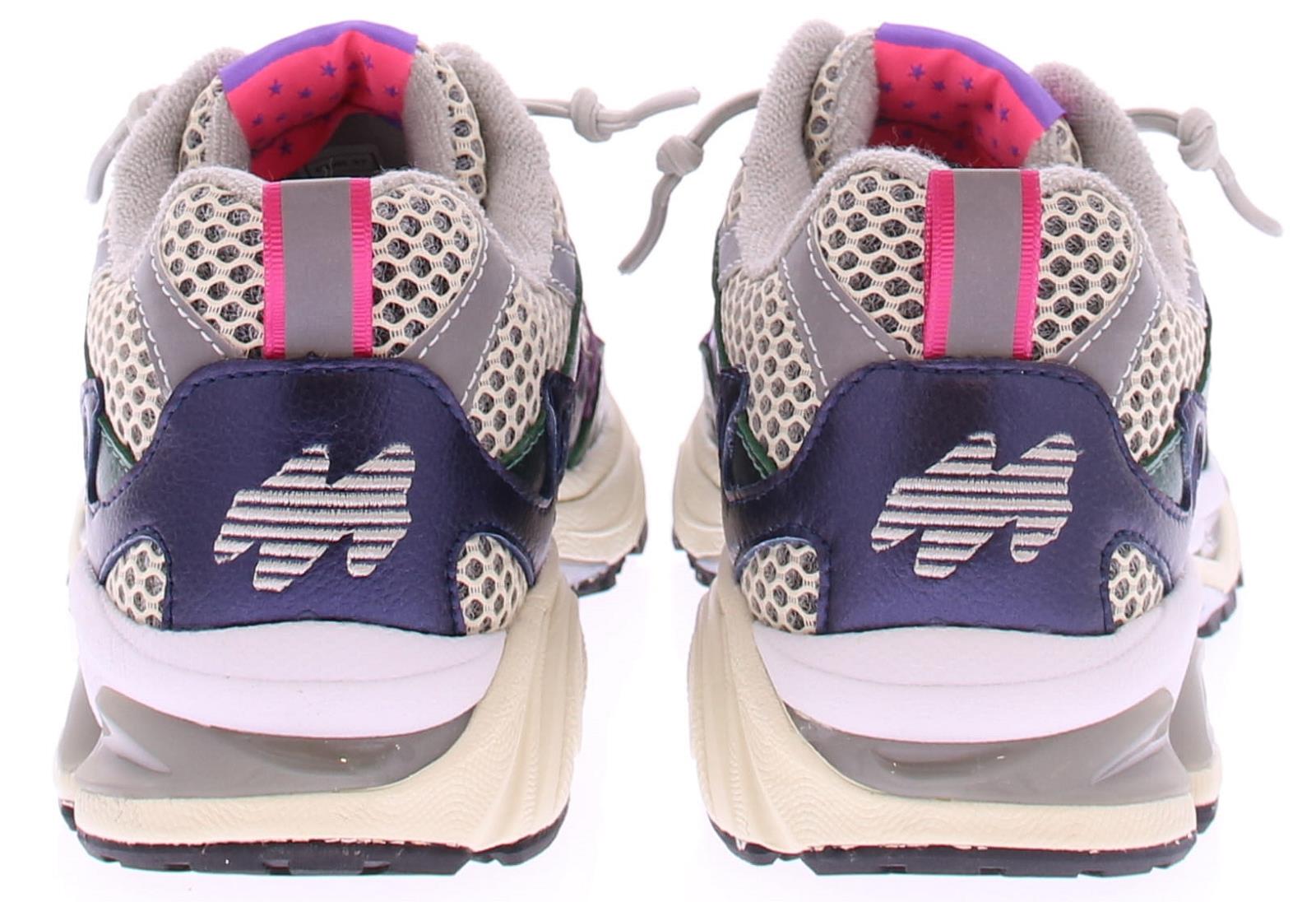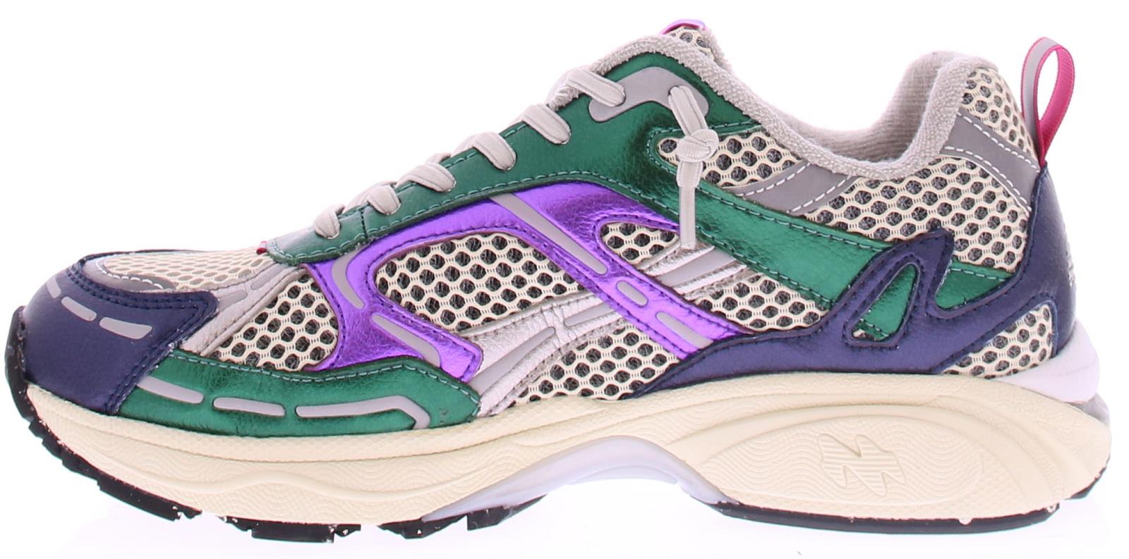 Multicoloured leather with mesh women's sneaker by Maripe. These sneakers are made of dark blue, green and purple leather with panels in coarse mesh. The lining is made of soft textile, making them wonderfully comfortable. The rubber sole offers excellent grip and support. The footbed is replaceable for your own personal insole.
