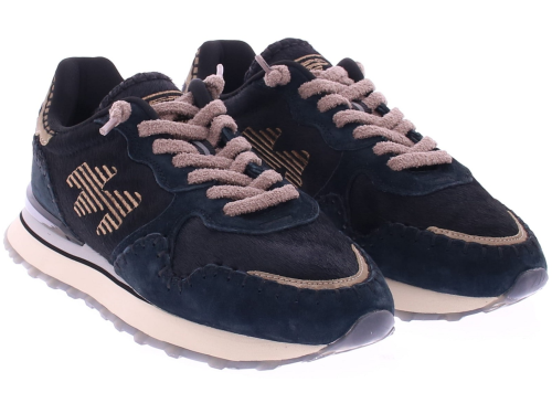 Black women's sneaker from MRP, featuring a mix of black pony hair (hairy cow) and soft suede. The chunky decorative stitching gives this trendy sneaker a rugged edge, while the bronze accents create a refined finish. The sneaker features elastic laces for added comfort, but also comes with a classic lace in the box—allowing you to customize your look. Thanks to the comfortable fit and removable footbed, this is the ideal fashion sneaker.