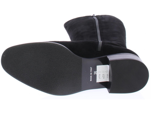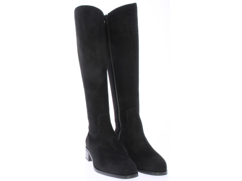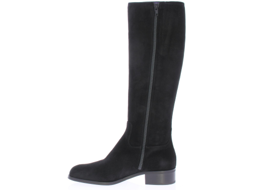 Black suede women's boot by Nalini. The boot has a slightly rounded toe. The shaft is an XS shaft, very suitable for the somewhat slimmer calf. The inner lining is made of leather and the boot has a zipper on the inside. The heel measures approximately 2 cm.