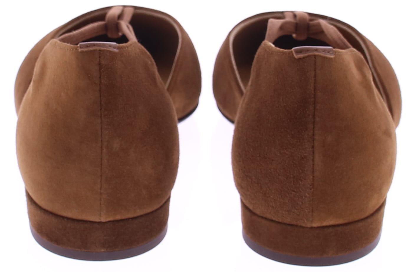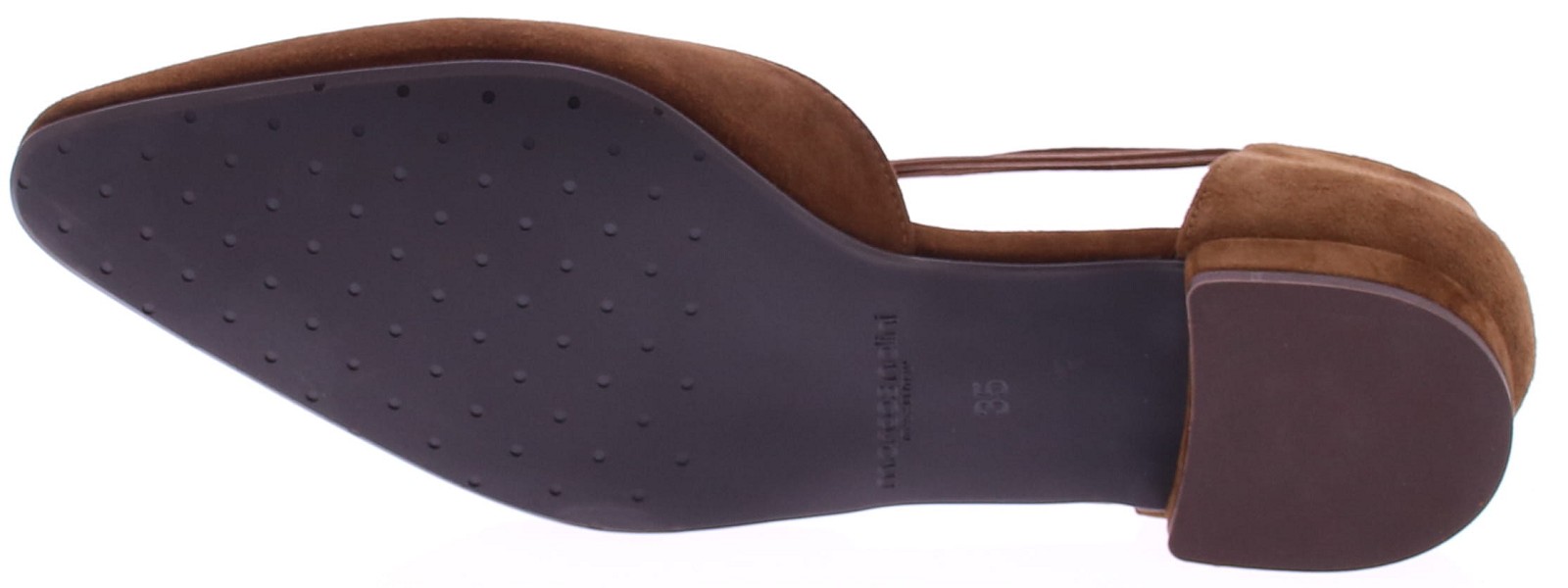 These elegant, mid-brown T-strap shoes from Nalini are both dressy and comfortable thanks to their low heel. The calf suede is soft and warm. They are leather-lined and have a thin rubber sole. The elastic strap on the instep conforms to the foot, providing support and a feminine look. Nalini shoes have a good fit, are true to size, and are made in half sizes. Order directly online or try them on in our women's store in The Hague.