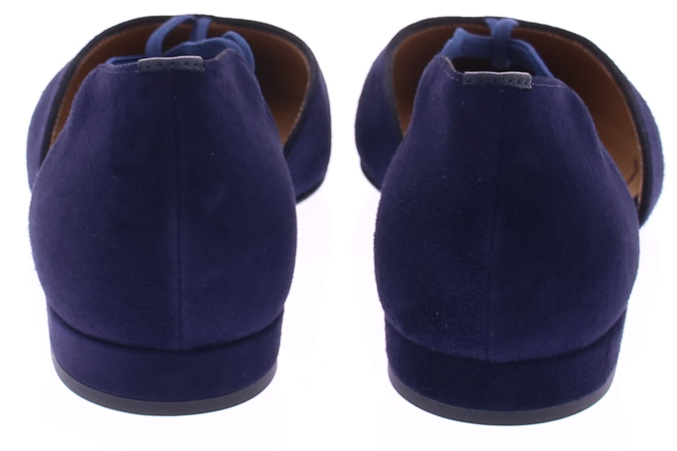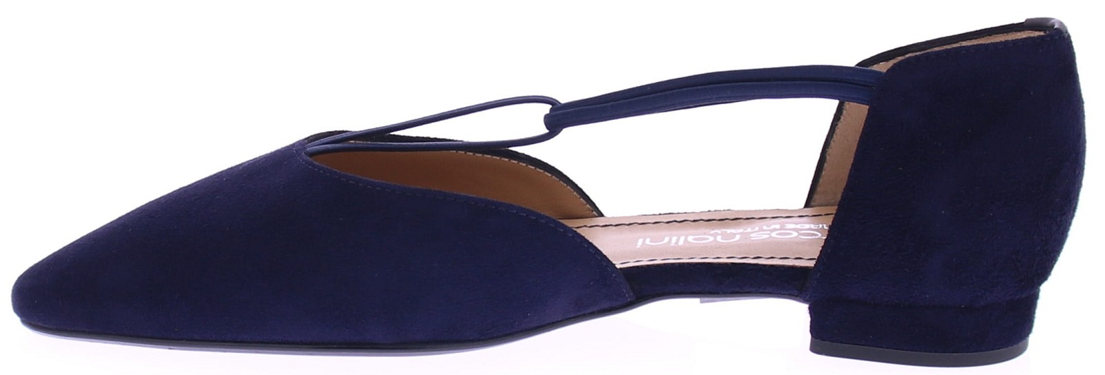 These elegant dark blue T-strap shoes from Nalini are both dressy and comfortable thanks to their low heel. The calf suede is soft and warm. They are leather-lined and have a thin rubber sole. The elastic strap on the instep conforms to the foot, providing support and a feminine look. Nalini shoes have a good fit, are true to size, and are made in half sizes. Order directly online or try them on in our women's store in The Hague.