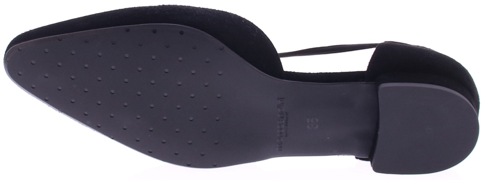 These elegant black T-strap shoes from Nalini are both dressy and comfortable thanks to their low heel. The calf suede is soft and warm. They are leather-lined and have a thin rubber sole. The elastic strap on the instep conforms to the foot, providing support and a feminine look. Nalini shoes have a good fit, are true to size, and are made in half sizes. "Discover other Nalini women's pumps at Klijsen."