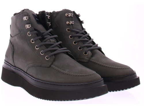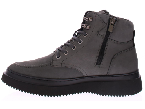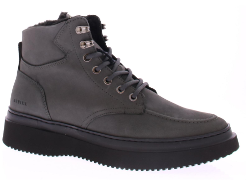 Mid-height lace-up boot from Nubikk, Johah Polar, in gray nubuck with a sporty, lightweight dark rubber sole. The shoe is fabric-lined.