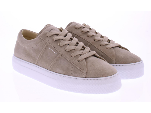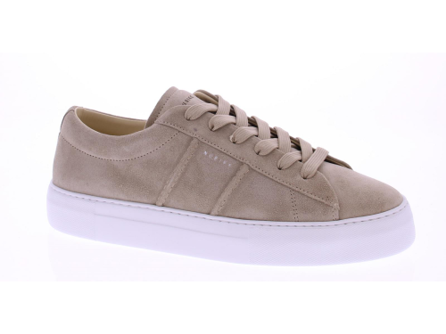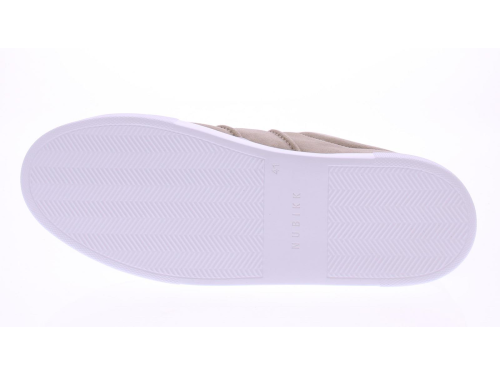 Men's sneakers from the Dutch brand Nubikk, item 21089200, model Jagger Morris. The shoe has a beige suede upper and a natural leather/fabric lining. The sole is white rubber. The insole is removable.