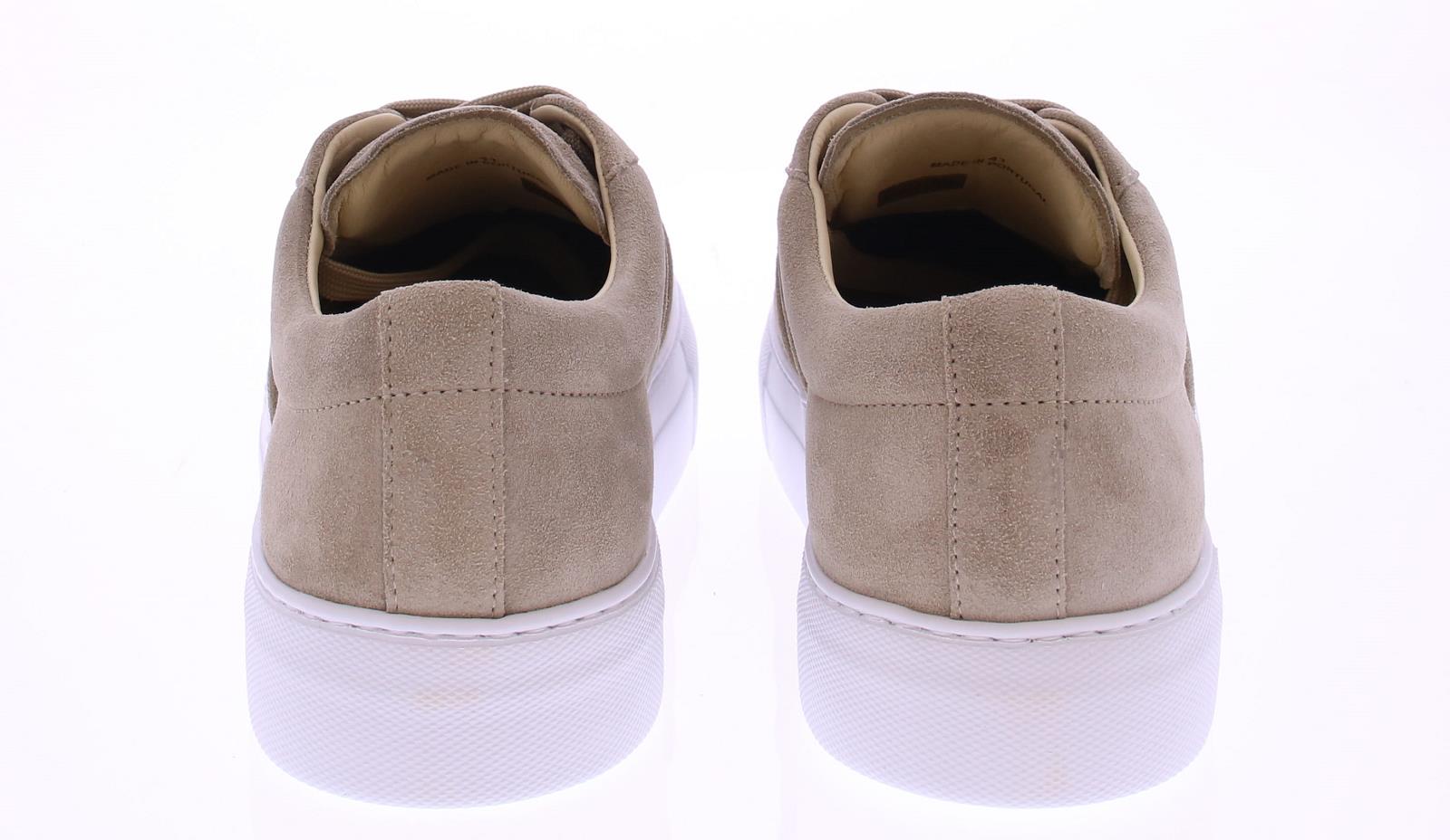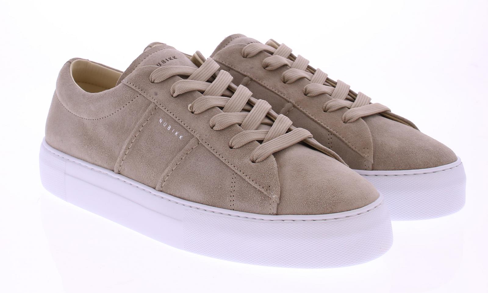 Men's sneakers from the Dutch brand Nubikk, item 21089200, model Jagger Morris. The shoe has a beige suede upper and a natural leather/fabric lining. The sole is white rubber. The insole is removable.