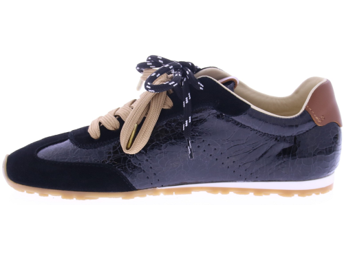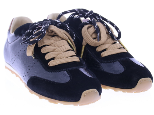 Black suede with a vintage-look leather women's sneaker from Nubikk. This Billy Lou features two-tone laces and is made of black suede with a removable footbed. This more refined sneaker style is on trend and adds a charming, sporty touch to any outfit.