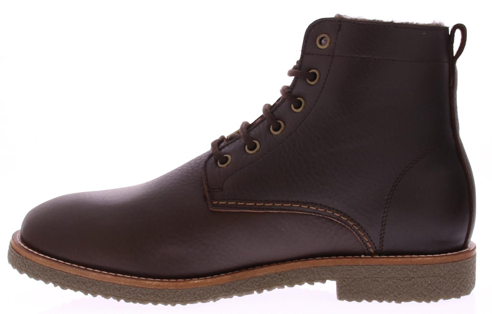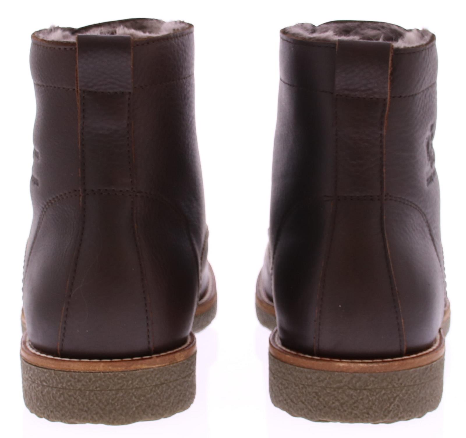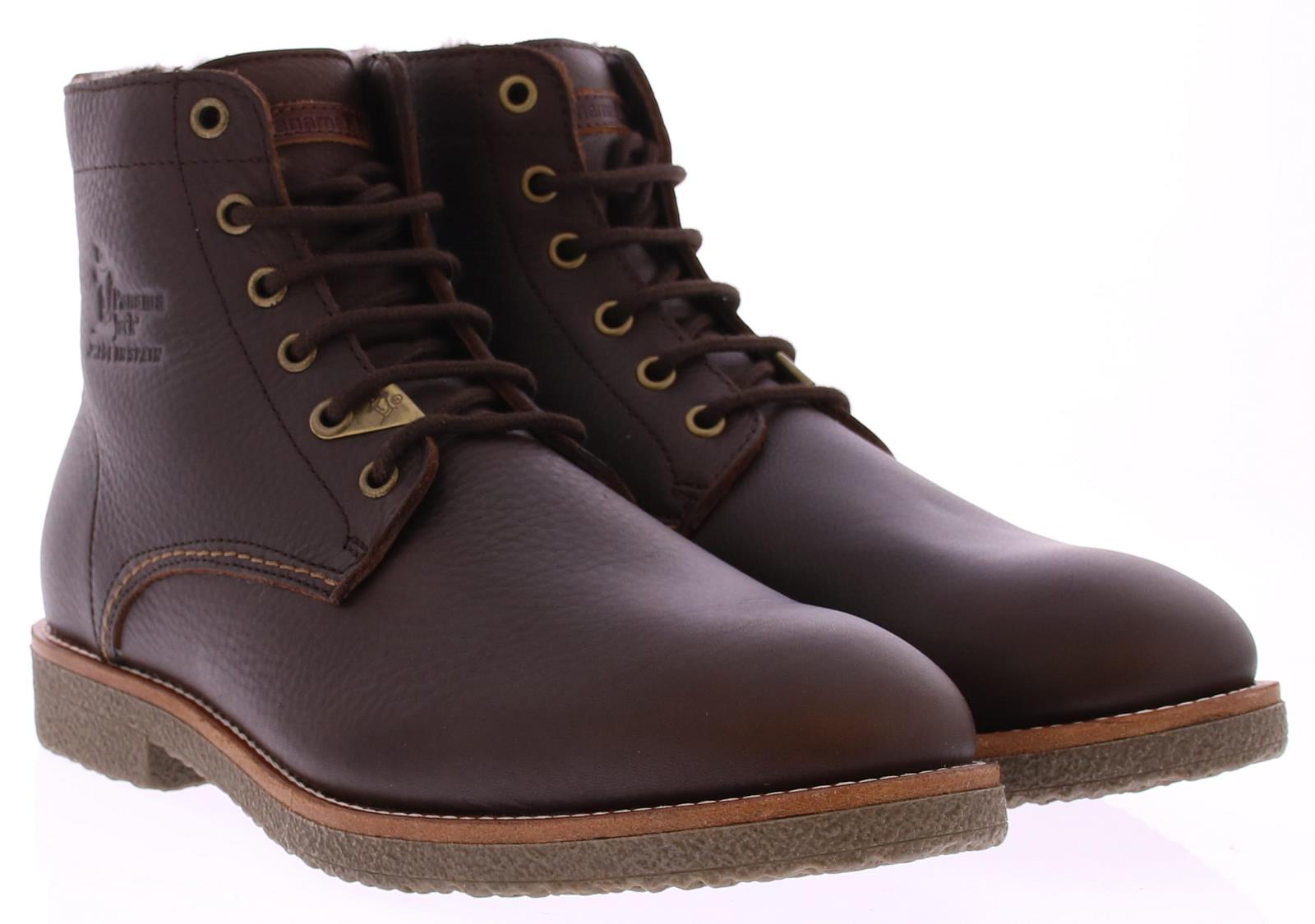 Mid-high lace-up boot from Panama Jack in dark brown leather with wool lining on a sporty rubber sole.