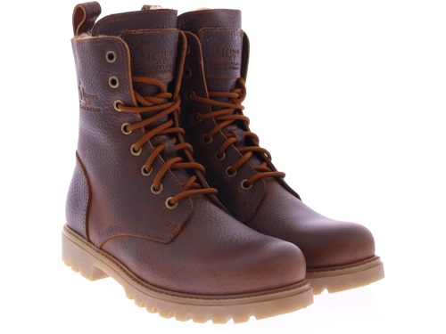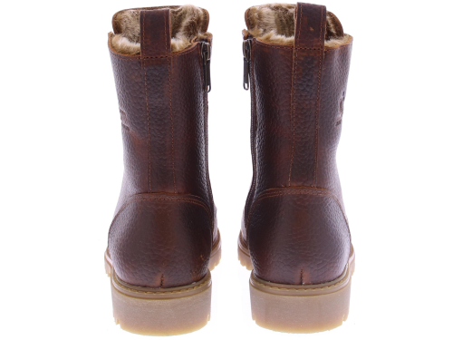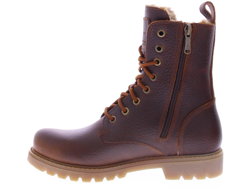 Mid brown leather women's lace-up shoe from Panama Jack. These leather boots have a tough look and are finished with a brand relief on the shaft, tongue and heel. The boot has an easy zipper with lace closure. The lace has a nice black silver pattern and a matching pull tab with logo. These trendy stylish boots have a faux fur lining, which makes your feet feel wonderfully warm! Thanks to its soft removable footbed and its non-slip sole, you can walk effortlessly through the city or a pleasant walk in the woods.