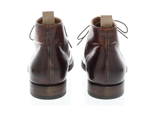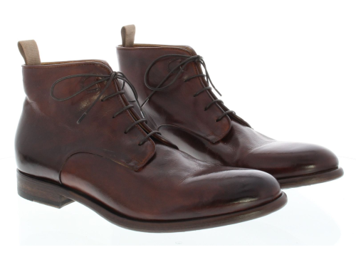 Brown leather men's lace-up boot by Pantanetti. The boot is made of hand-finished buffalo leather. The shoes have a used look and are therefore also very good to wear casually. The lining is made of leather and the sole is a combination of leather and rubber.