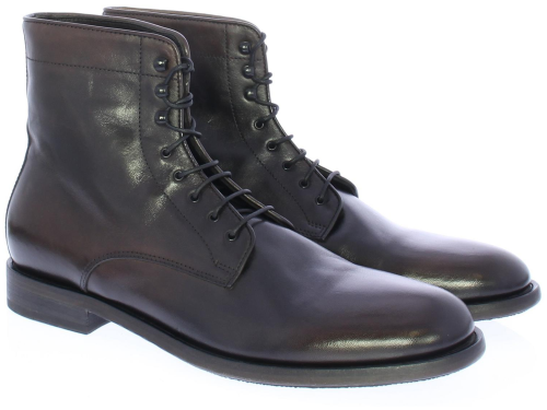 Brown leather men's ankle boot by Pantanetti. This ankle boot comes in dark brown horse leather that is tanned in the same way as nappa leather. This makes the leather very supple. The sole is made of rubber and the inner lining is made of leather.