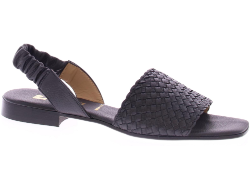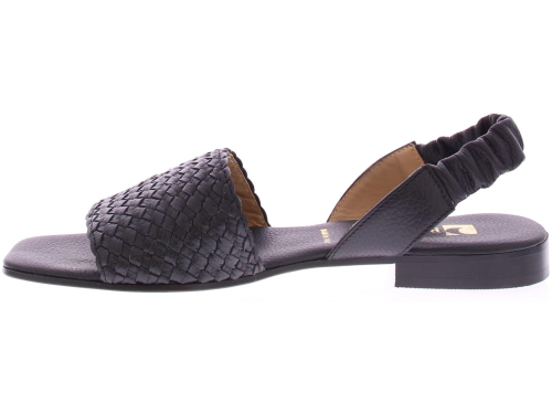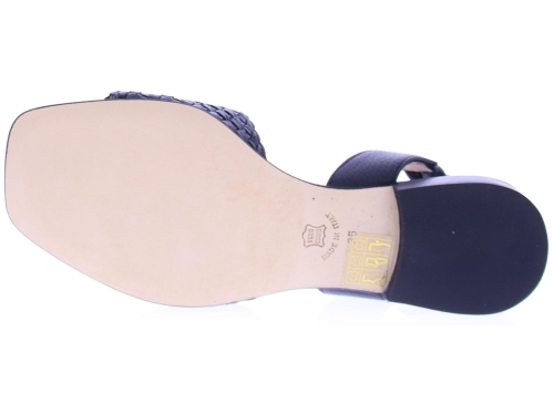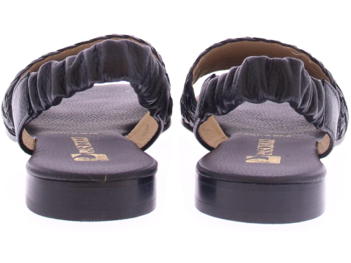 Black leather women's sandal by Pascucci. This sandal has a strap over the foot of lightly braided leather. The heel strap is covered with a soft and flexible elastic so that it fits well. The comfortable footbed is made of leather and the heel has a height of 2 cm.