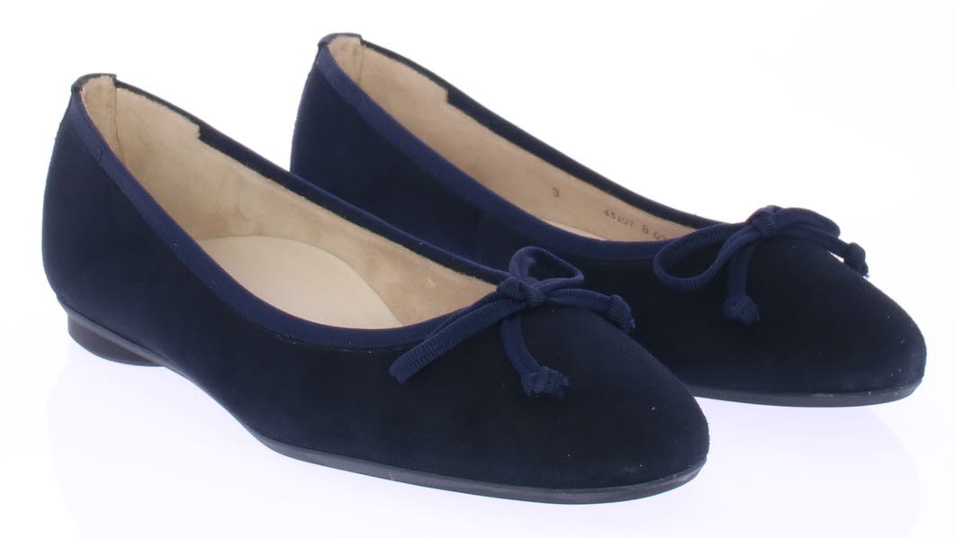 Dark blue suede women's ballerina by Paul Green. This ballerina is made in the super soft way which makes it extra comfortable. The sole is made of flexible rubber and the footbed is made of leather.