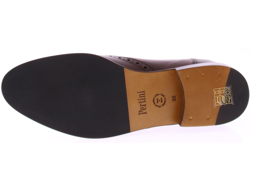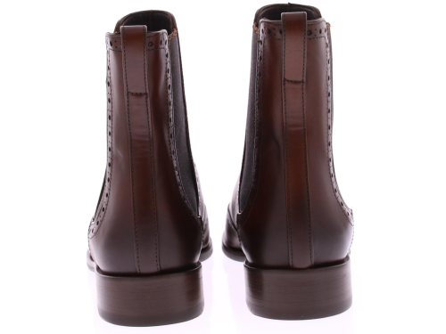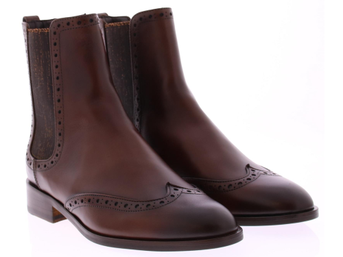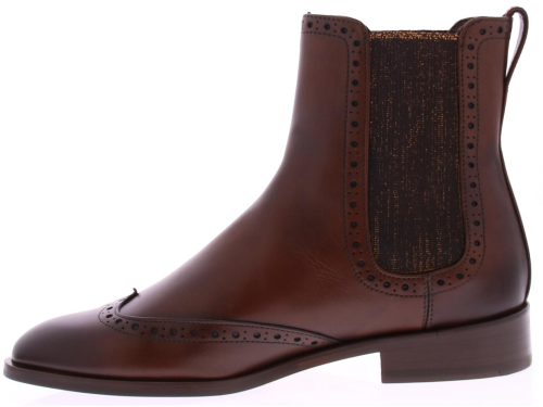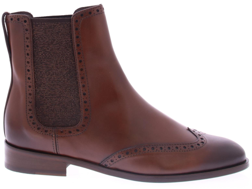 Mid-brown leather ladies brogue Chelsea boot by Pertini. On a somewhat finer, elegant last with the well-known good Pertini fit. With a luxurious elastic insert on the side. The sole is made of rubber.