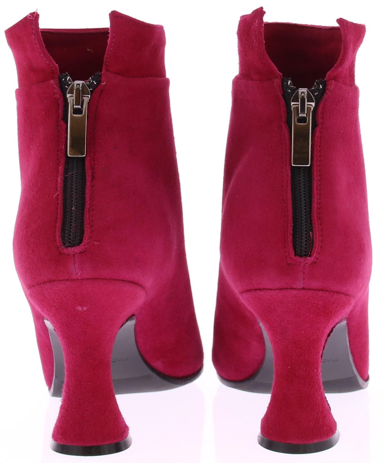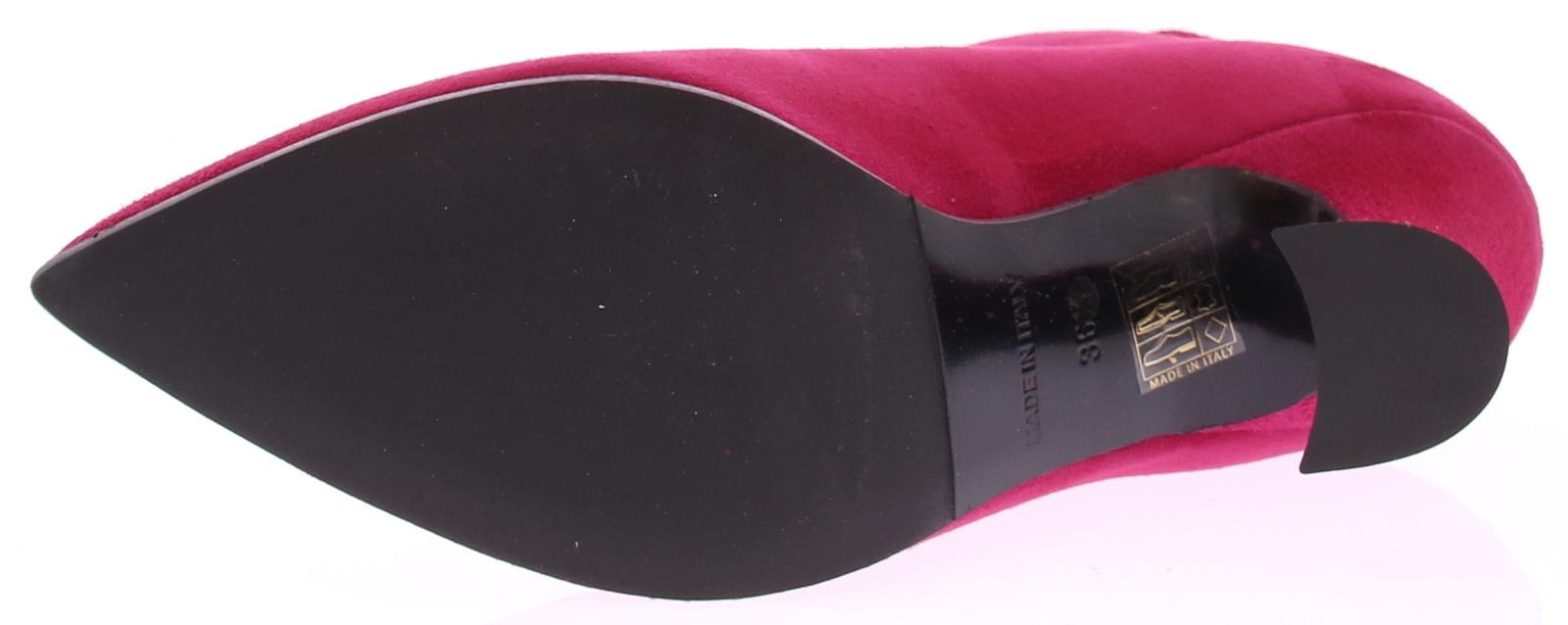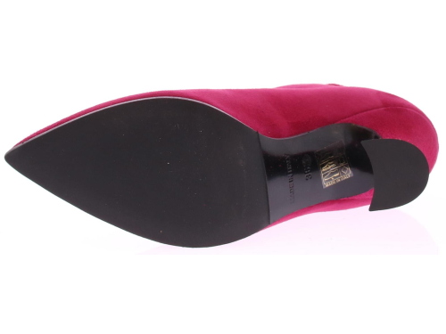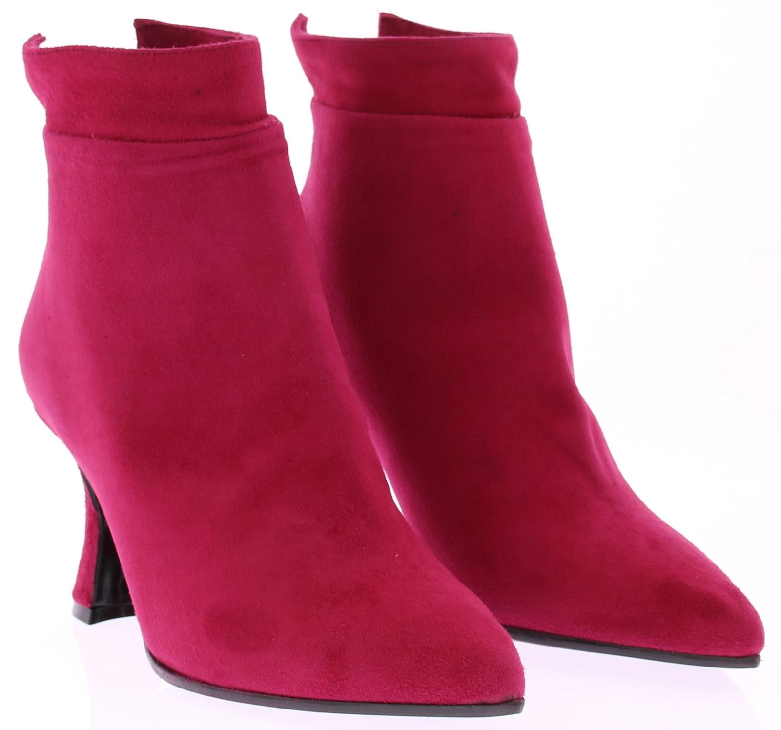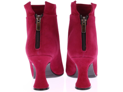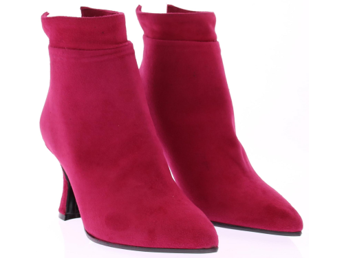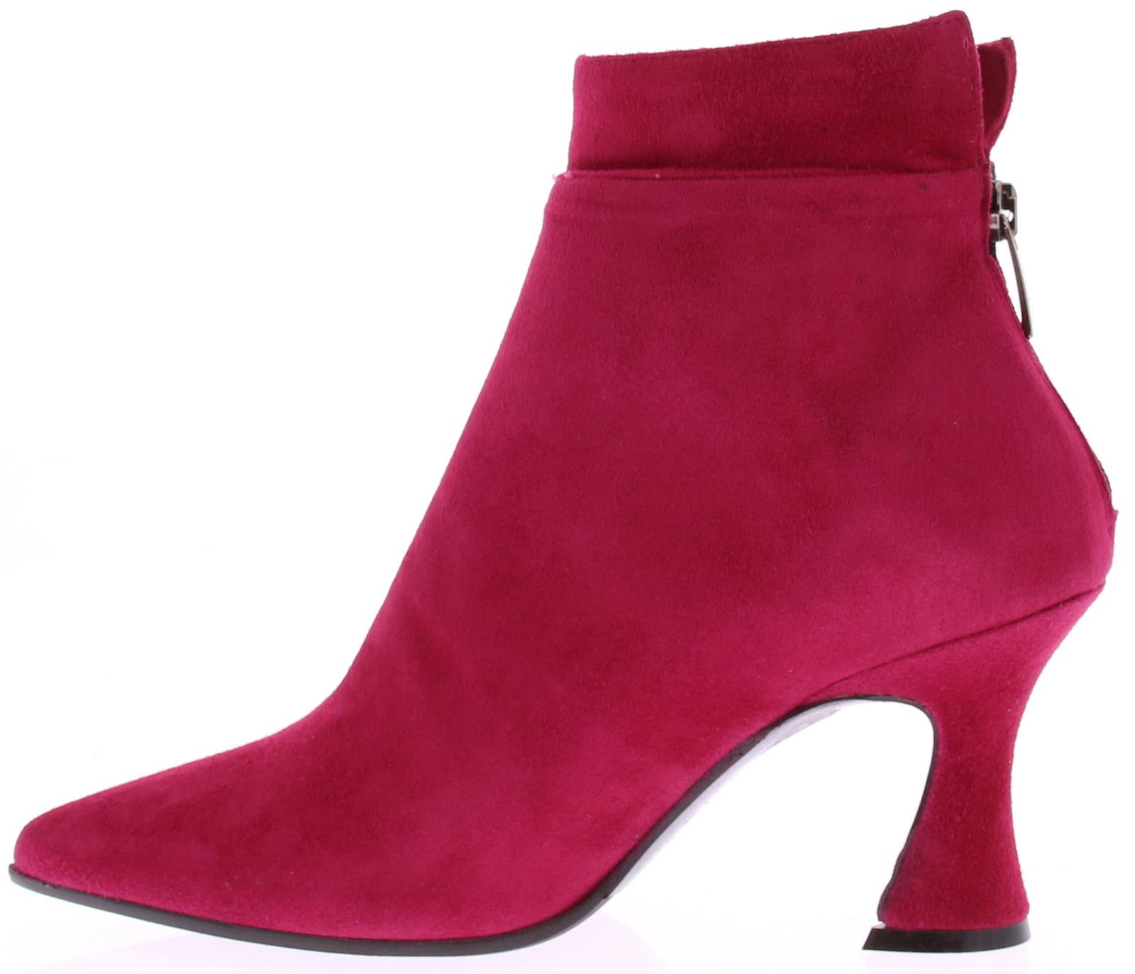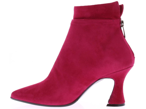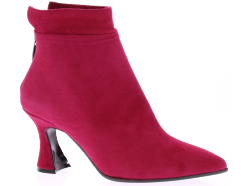 Red suede women's boot by Cypres. The boot has a pointed toe and a zipper on the back of the heel. The heel height is 7 cm and the shape is slightly flared.