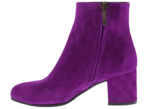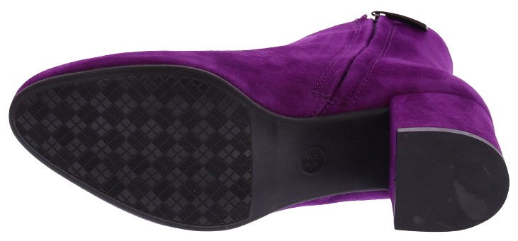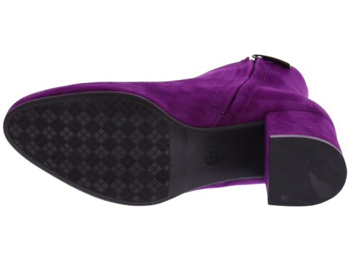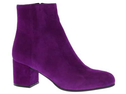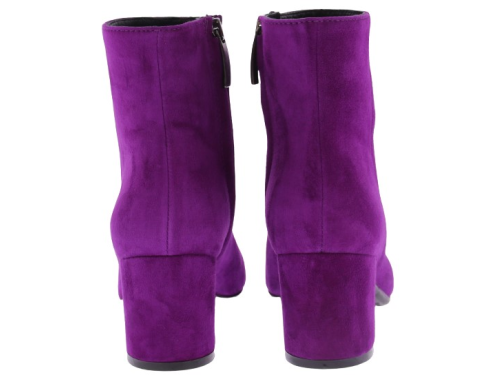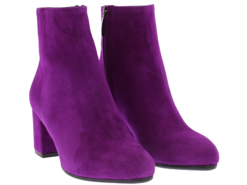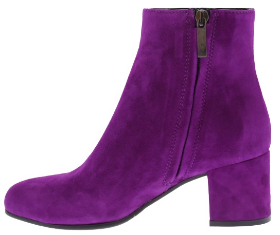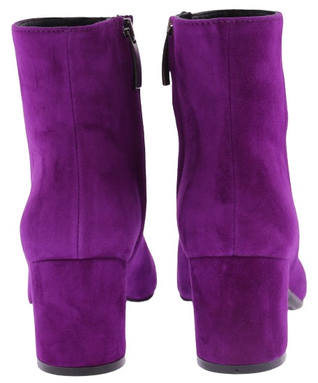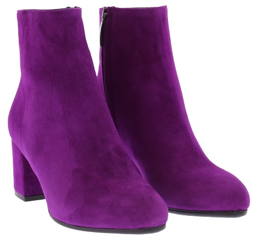 Dark fuchsia suede women's ankle boots by Donna Lei. These boots have a rounded toe, a zipper on the inside and a covered block heel of 5 cm high. The sole is made of rubber. An ideal basic boot for with a skirt, pants or dress.