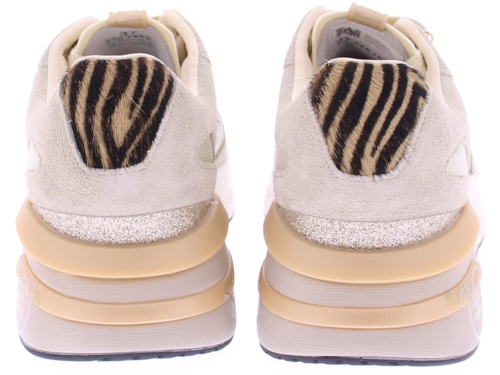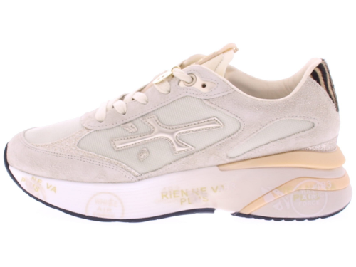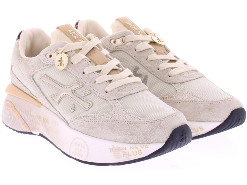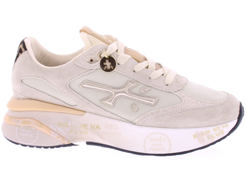 Sand-colored leather and fabric women's sneaker from Premiata. This women's sneaker from Premiata, the MOURUND 7800, features gold-colored leather accents. The signature Premiata sole provides excellent cushioning and comfort, while the fantastic fit ensures a perfect fit. The sneaker also features a removable insole for extra flexibility.