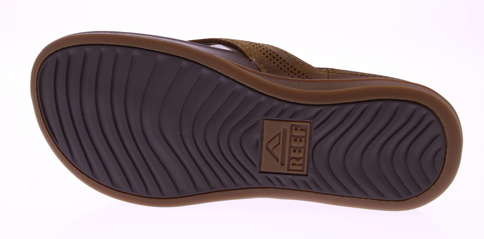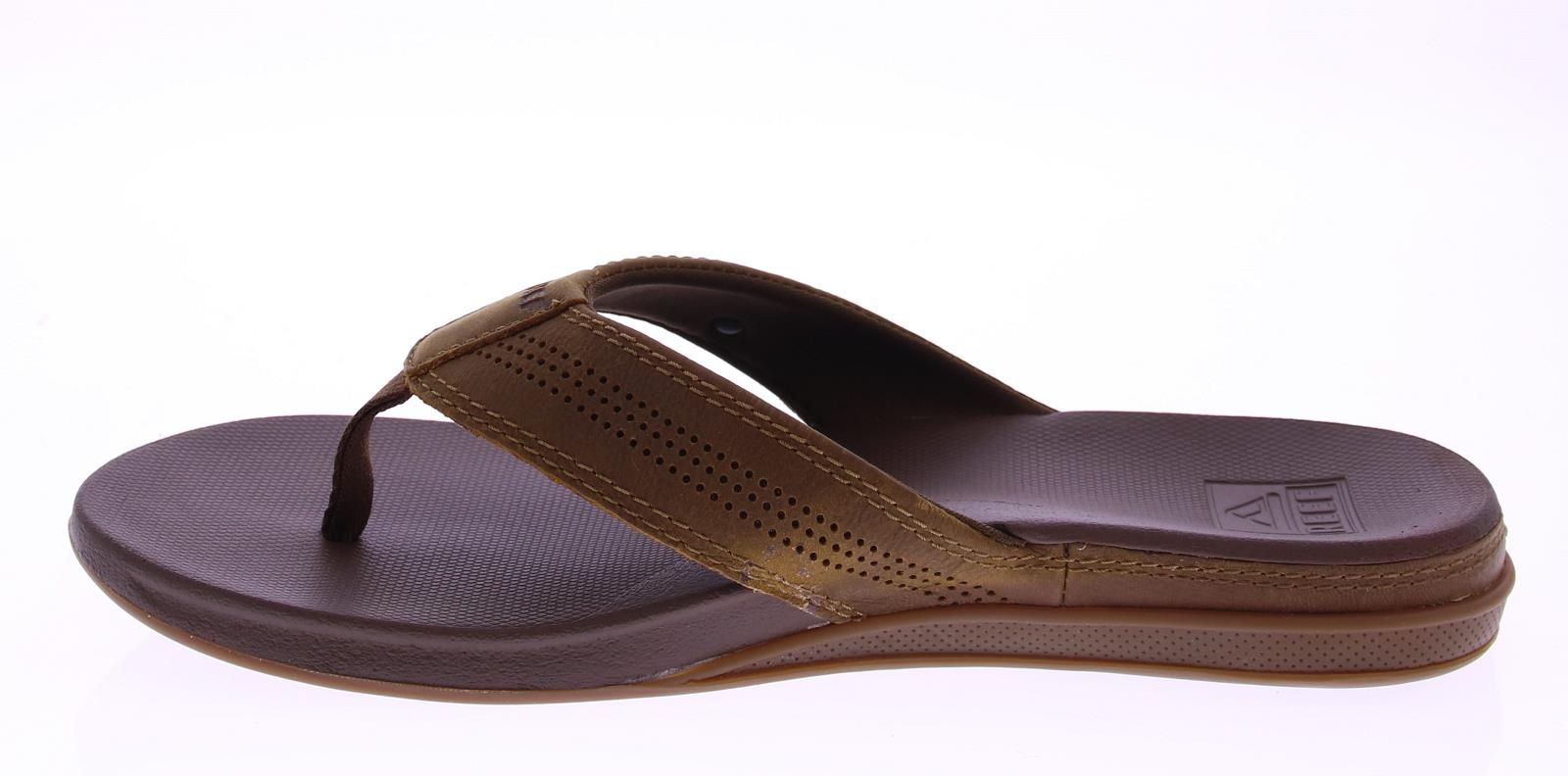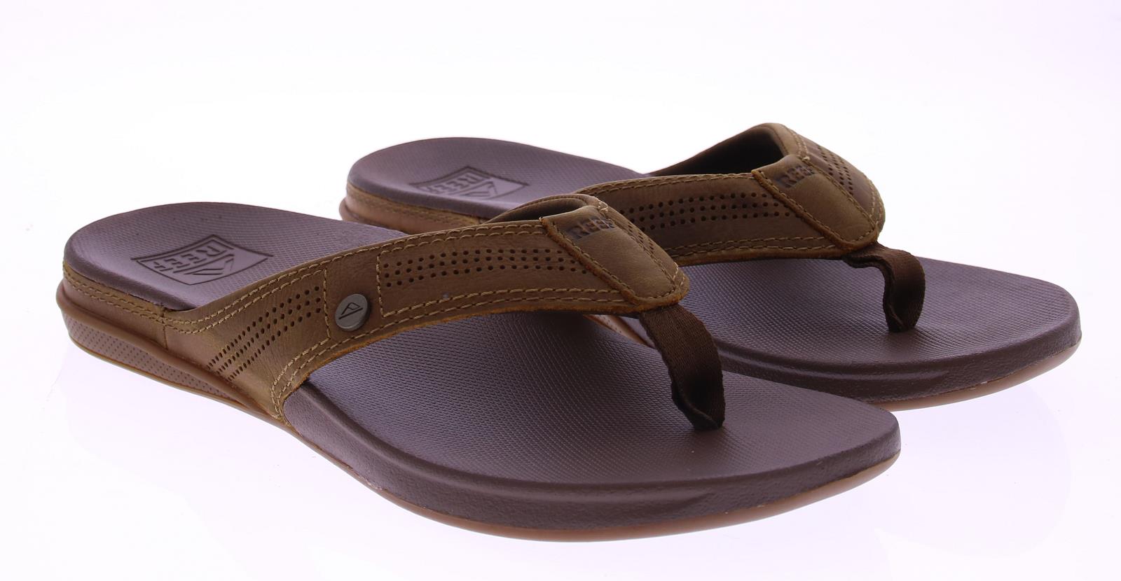 Brown men's flip-flops from the Reef brand. The Reef Cushion Lux RF0A3YMNTFF flip-flops for men feature a supportive footbed for extra comfort and a padded leather strap. The soft EVA footbed provides support and bounces back with every step.