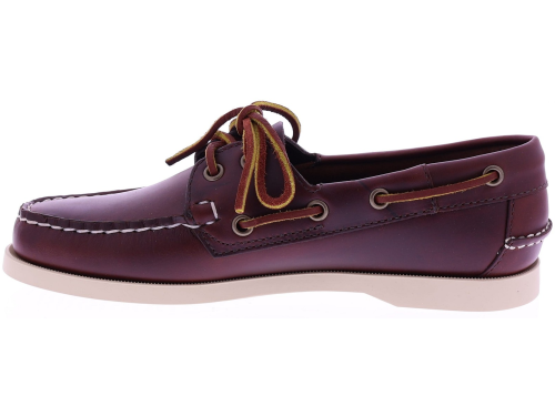 Reddish-brown women's loafers by Sebago, model Portland Dockside Waxed. This durable, adventure-oriented boat shoe is ideal for those who love a nautical style combined with functional comfort. The breathable, waxed leather is hand-stitched with traditional craftsmanship and molds beautifully to the foot. Thanks to the leather lining, the 360-degree rawhide lacing system, and the sturdy anti-slip rubber sole, this moccasin offers excellent grip and stability, even in wet weather. A rugged classic inspired by Portland's maritime heritage. Also discover other women's loafers from Sebago at Klijsen.