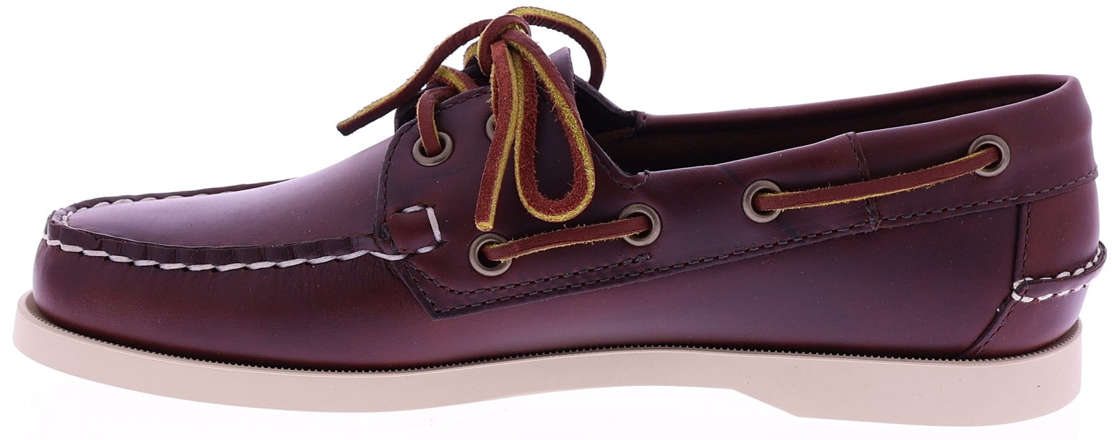 Reddish-brown women's loafers by Sebago, model Portland Dockside Waxed. This durable, adventure-oriented boat shoe is ideal for those who love a nautical style combined with functional comfort. The breathable, waxed leather is hand-stitched with traditional craftsmanship and molds beautifully to the foot. Thanks to the leather lining, the 360-degree rawhide lacing system, and the sturdy anti-slip rubber sole, this moccasin offers excellent grip and stability, even in wet weather. A rugged classic inspired by Portland's maritime heritage. Also discover other women's loafers from Sebago at Klijsen.