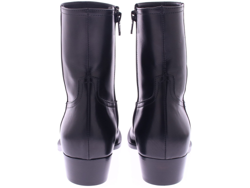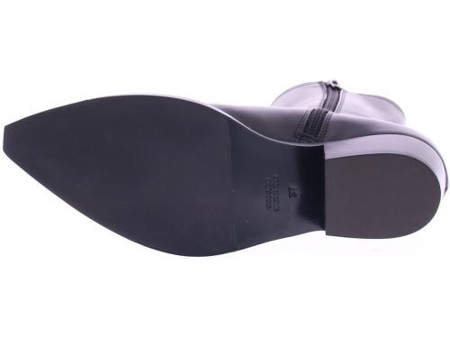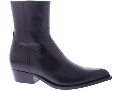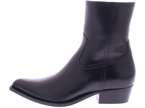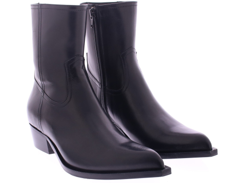 The Zared Gaucho by Guglielmo Rotta is a stylish black leather women's boot with a modern city-western vibe. This short boot combines a rugged, feminine style with subtle elegance. The slightly shiny leather and sleek design give the shoe a chic and refined look. Perfect for both dresses and jeans, its timeless shape makes it a boot that will effortlessly last through every season. The Zared offers the best of both worlds: a powerful look with a touch of elegance.
