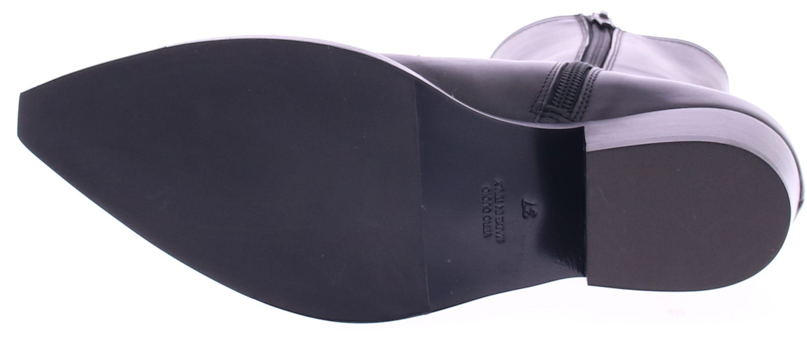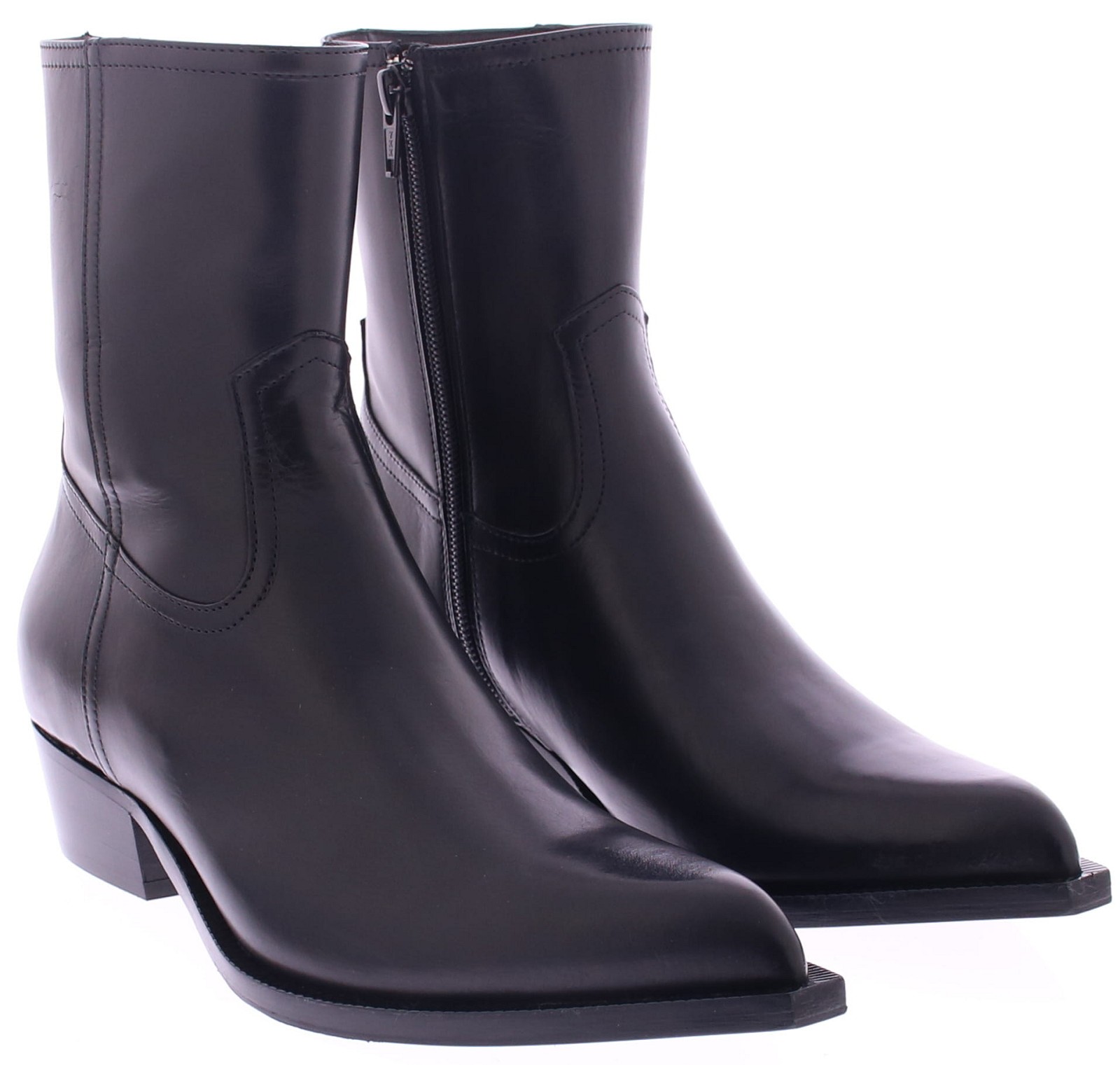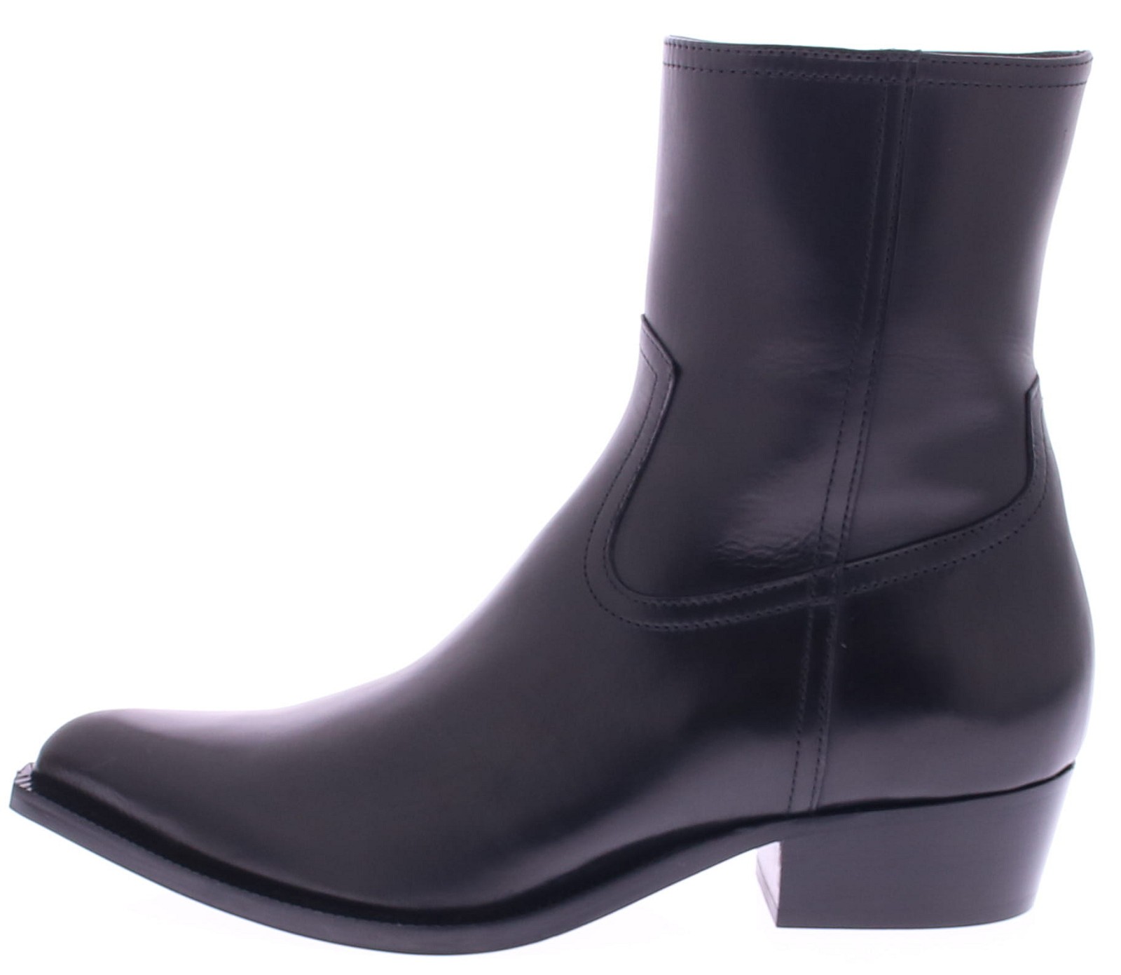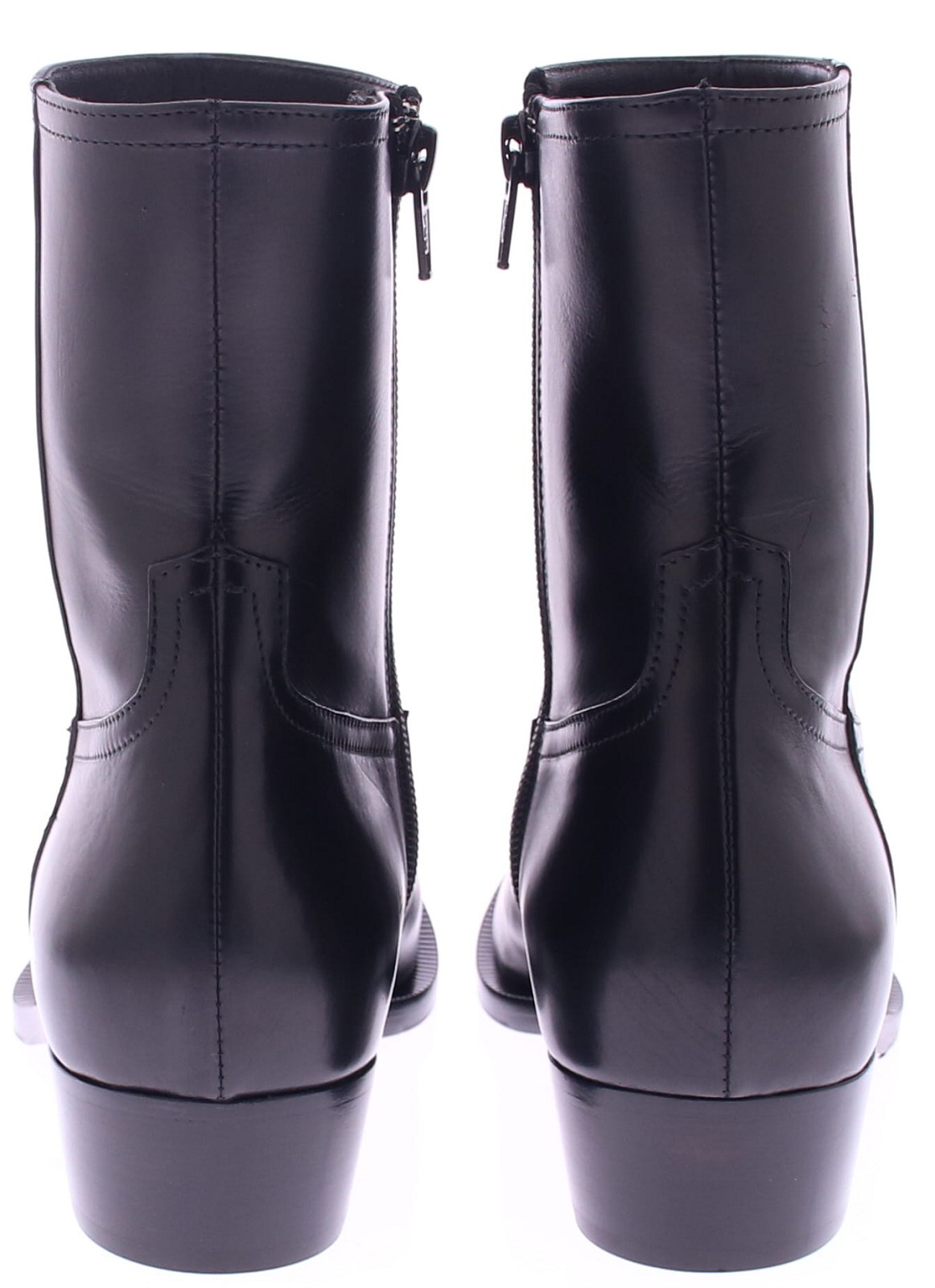 The Zared Gaucho by Guglielmo Rotta is a stylish black leather women's boot with a modern city-western vibe. This short boot combines a rugged, feminine style with subtle elegance. The slightly shiny leather and sleek design give the shoe a chic and refined look. Perfect for both dresses and jeans, its timeless shape makes it a boot that will effortlessly last through every season. The Zared offers the best of both worlds: a powerful look with a touch of elegance.