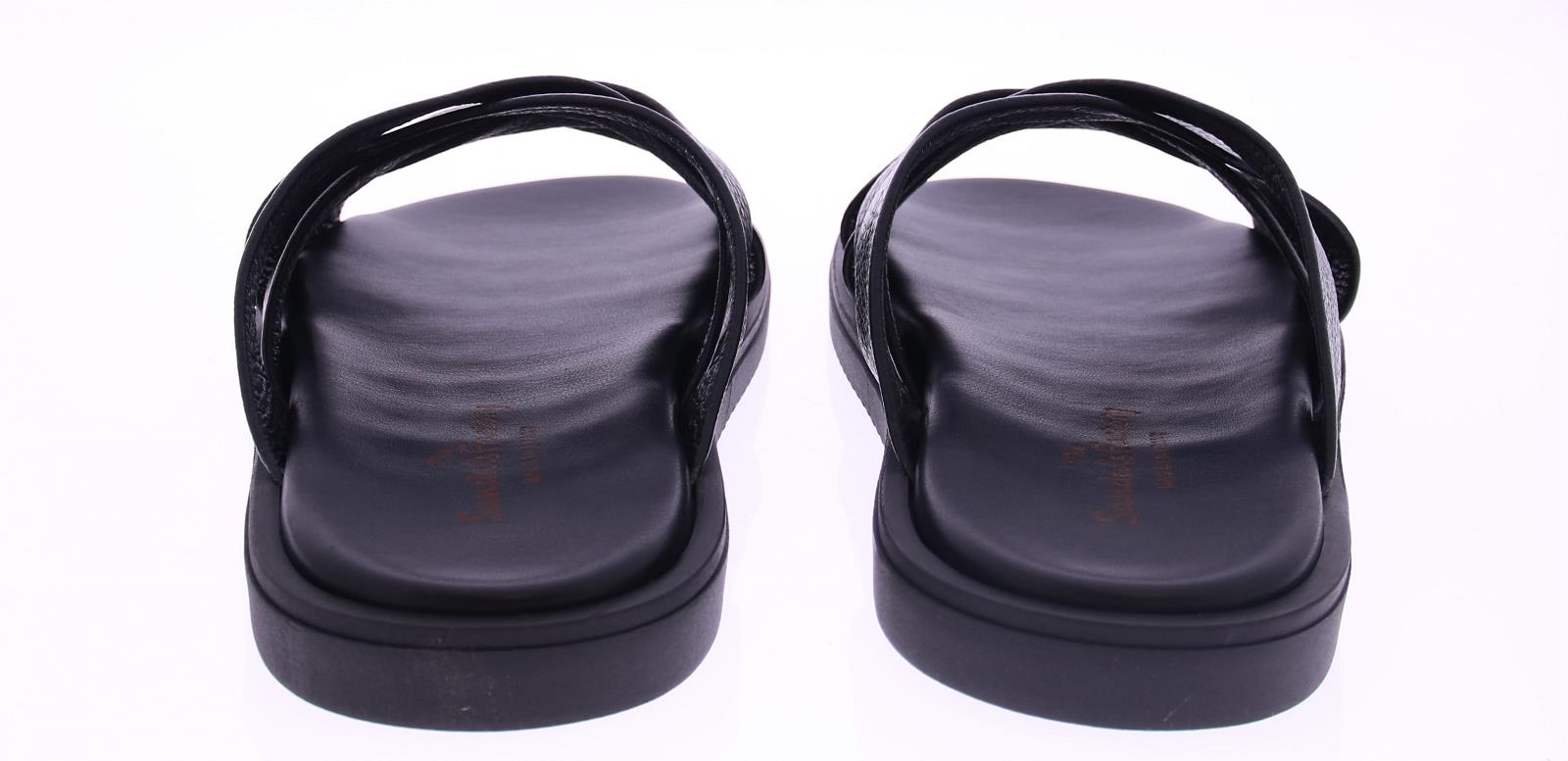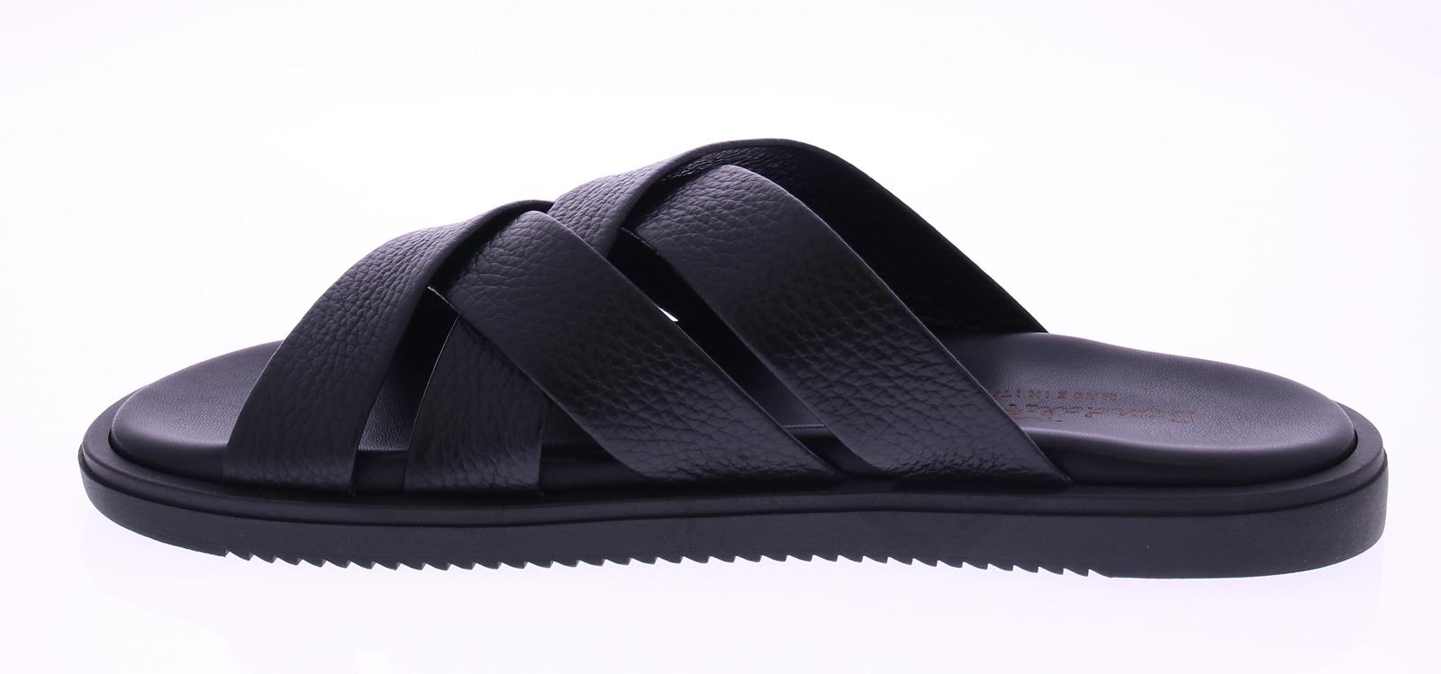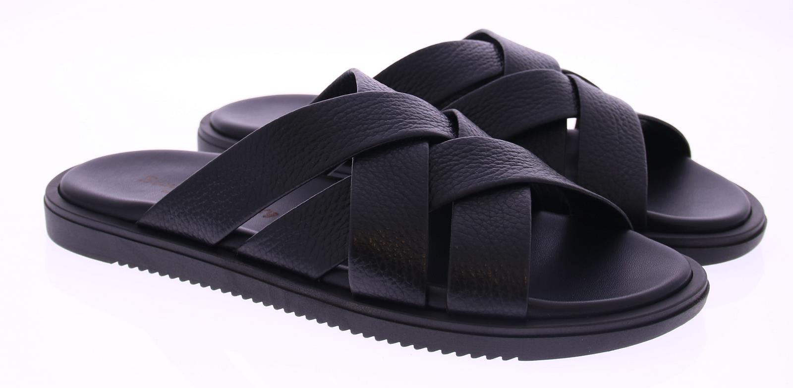 This luxurious men's slide from The Sandals Factory combines style and comfort. The upper and lining are crafted entirely from high-quality leather, ensuring a smooth fit and a refined look. The black color gives the slide a timeless and elegant look, while the durable rubber sole provides extra grip and comfort. Perfect for summer occasions!