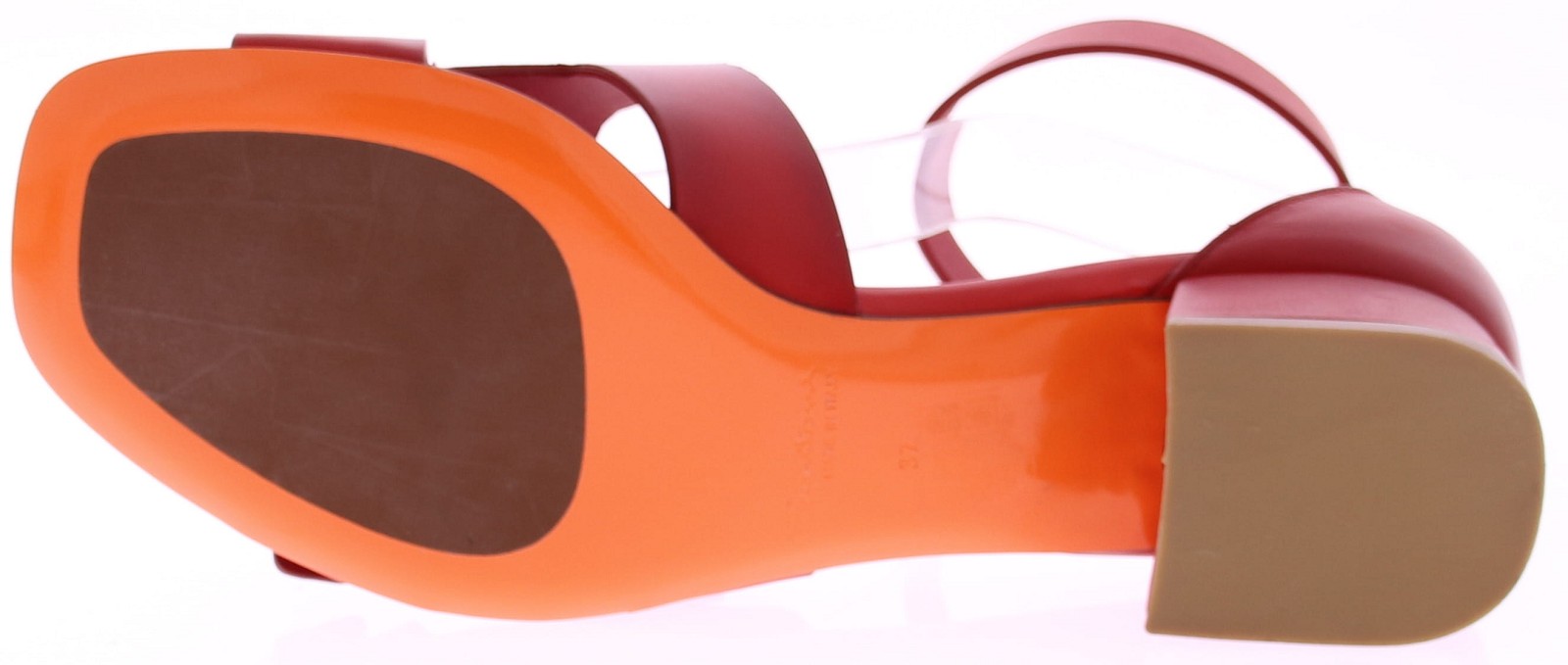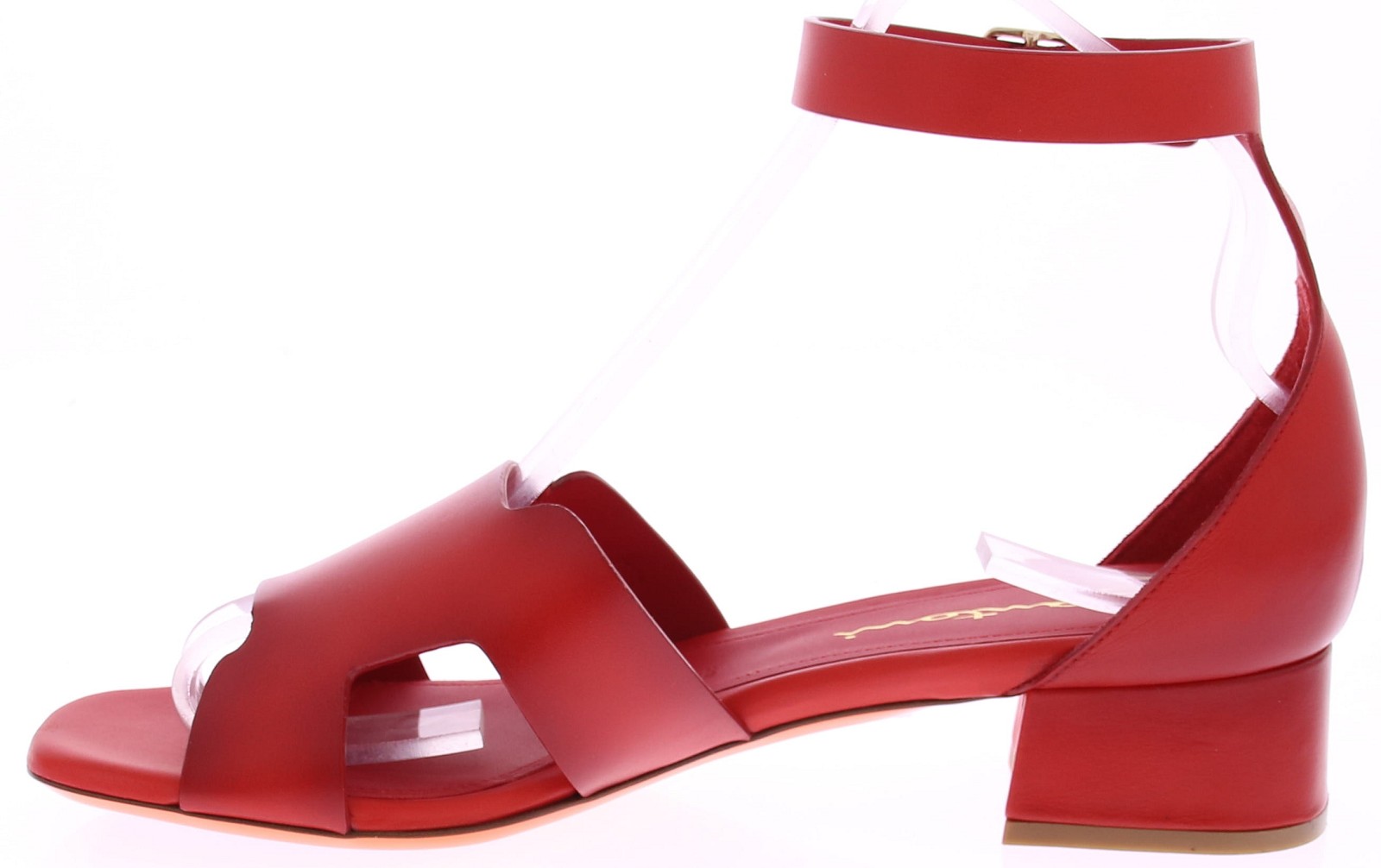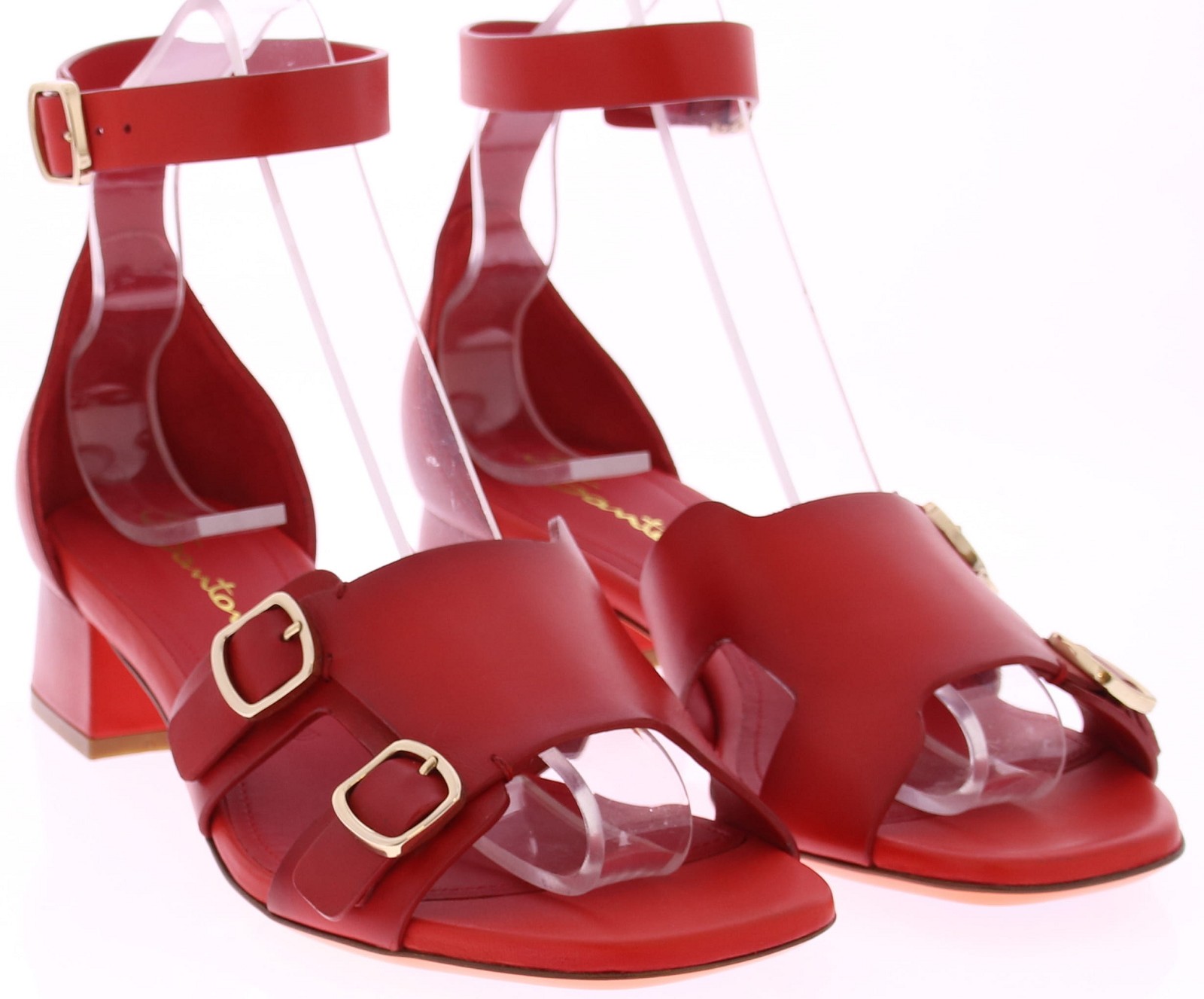 This elegant Santoni ankle-strap sandal for women in red leather combines luxury and comfort in a refined design. Finished in a warm, deep red, the shoe exudes class. The subtly rounded vamp features Santoni's signature double buckles, delicately finished with their subtle logo. The silver-tone ankle buckle ensures a perfect fit, while the sturdy 3cm block heel offers a comfortable lift. A timeless and stylish design, ideal for both formal and casual occasions.