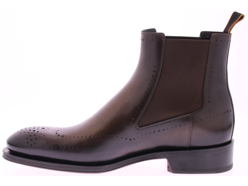 Santoni Chelsea Boot Carter MCCR19108MC8HIOTE81. Taupe calf leather, Goodyear Construction. Timeless class and Italian craftsmanship come together in the Santoni Carter 19108. This elegant Chelsea boot is crafted from taupe calf leather—a refined, neutral shade that effortlessly complements virtually any outfit. Thanks to the durable Goodyear construction, this is an investment in both style and quality. Details: The soft taupe color combined with the hand-applied patina creates a unique look that exudes elegance and refinement. The Goodyear construction guarantees longevity and offers the option of resoling, making this boot a sustainable choice. Style Advice: This taupe Chelsea boot is perfect for combining with light and earth tones. Wear it with beige or gray trousers, or pair it with a dark brown or navy suit for a stylish twist. Ideal for both formal and casual occasions.