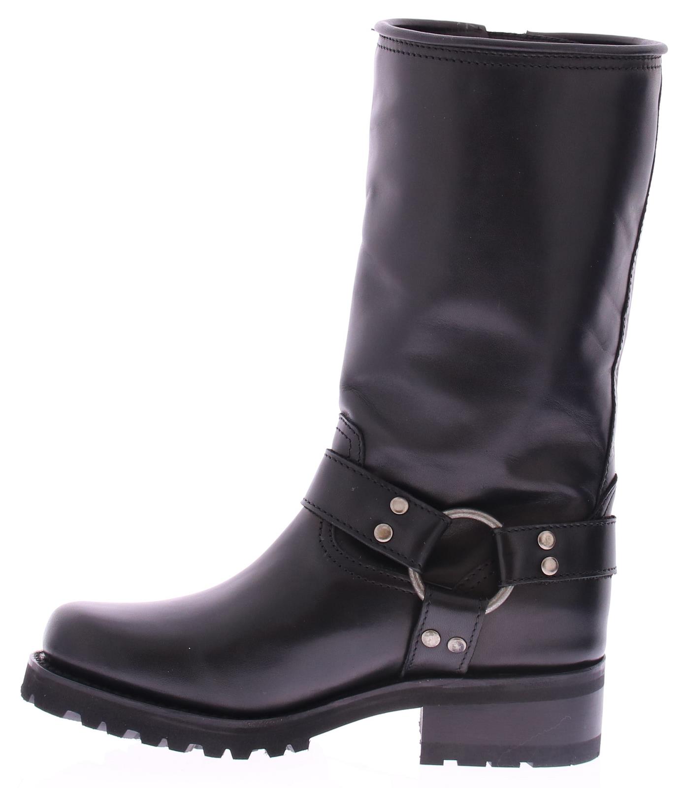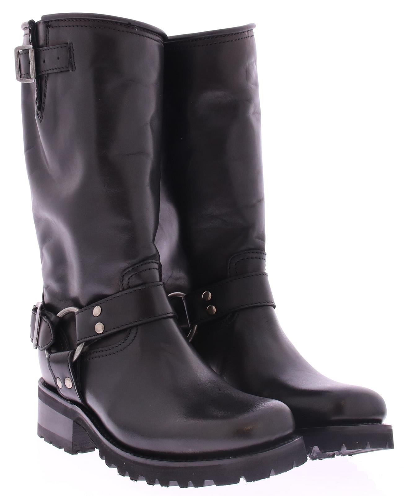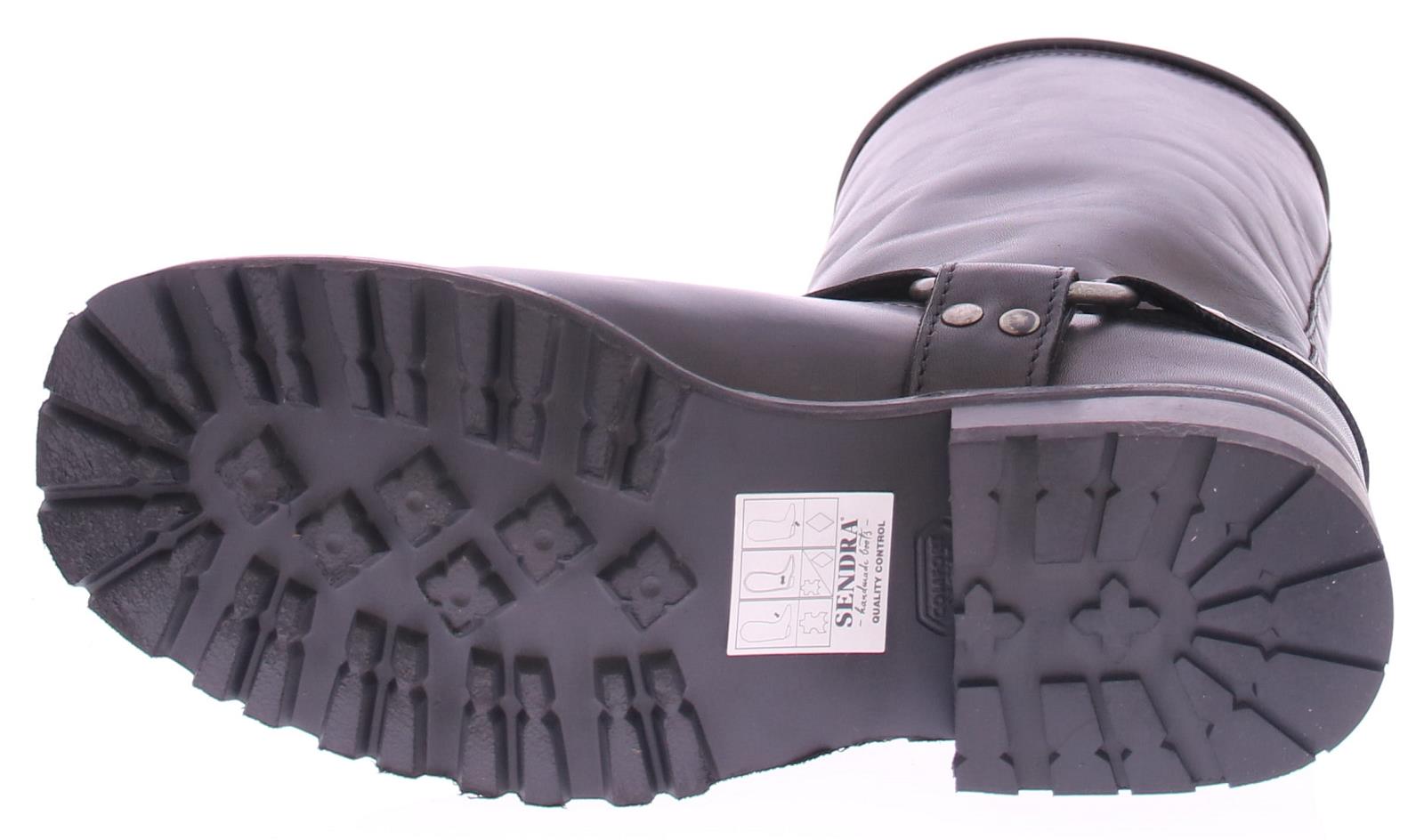 Sendra women's black leather high boot. Crafted from smooth black leather, the boot features a rugged design with a spur around the ankle. The boot is leather-lined for guaranteed comfort. The buckle at the top allows you to easily adjust the width. The rubber sole has a coarse tread, giving it a unique and rugged look.