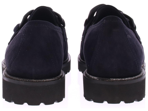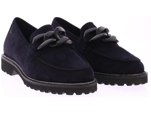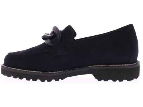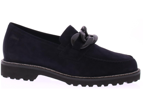 Black suede women's loafer from Sioux. This shoe features a matte black link on the instep, with a subtle glitter trim around the edge. The width of this loafer is an H, meaning it's slightly wider than usual. It has a rubber sole with a coarse tread.
