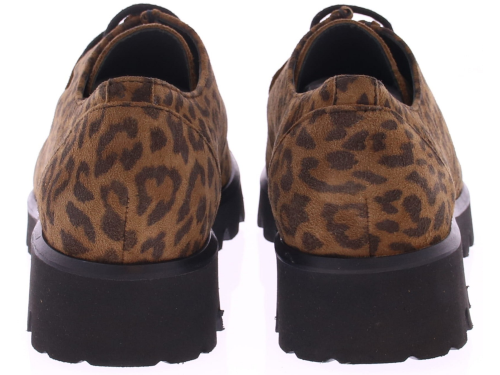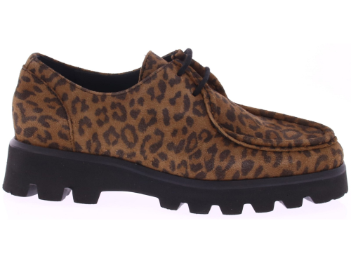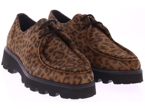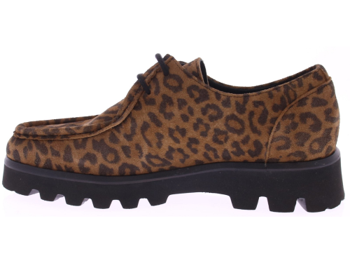 Brown suede women's lace-up shoe in leopard print from Sioux. This slip-on, the Meredira, features a lace-up closure, a comfortable H-width, and a super-soft footbed. The footbed is removable, and the lightweight sole is made of rubber.
