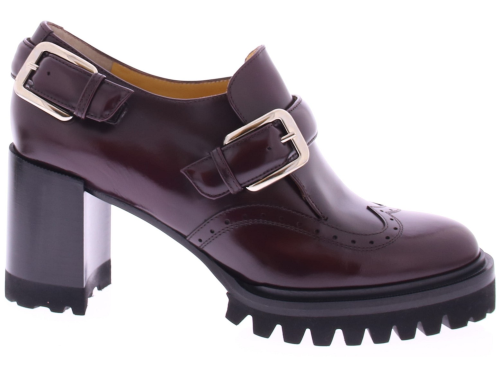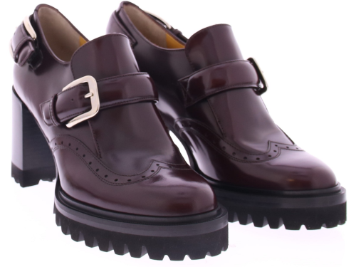 Bordeaux leather women's slip-on from Truman's. This stylish slip-on features two buckles as a nice detail at the heel and instep. The 2 cm platform sole and 7 cm heel ensure a stable walking experience. The thicker treaded sole gives this slip-on an extra stylish look and makes it suitable for various occasions.