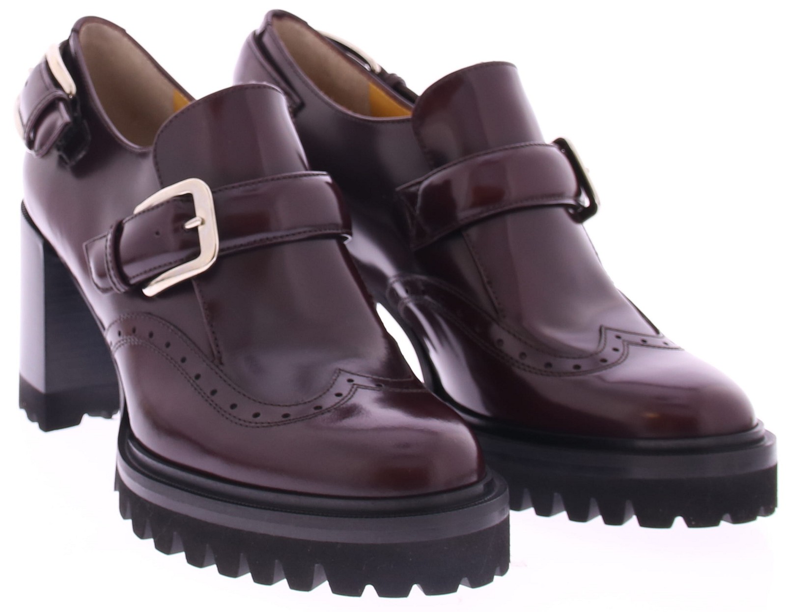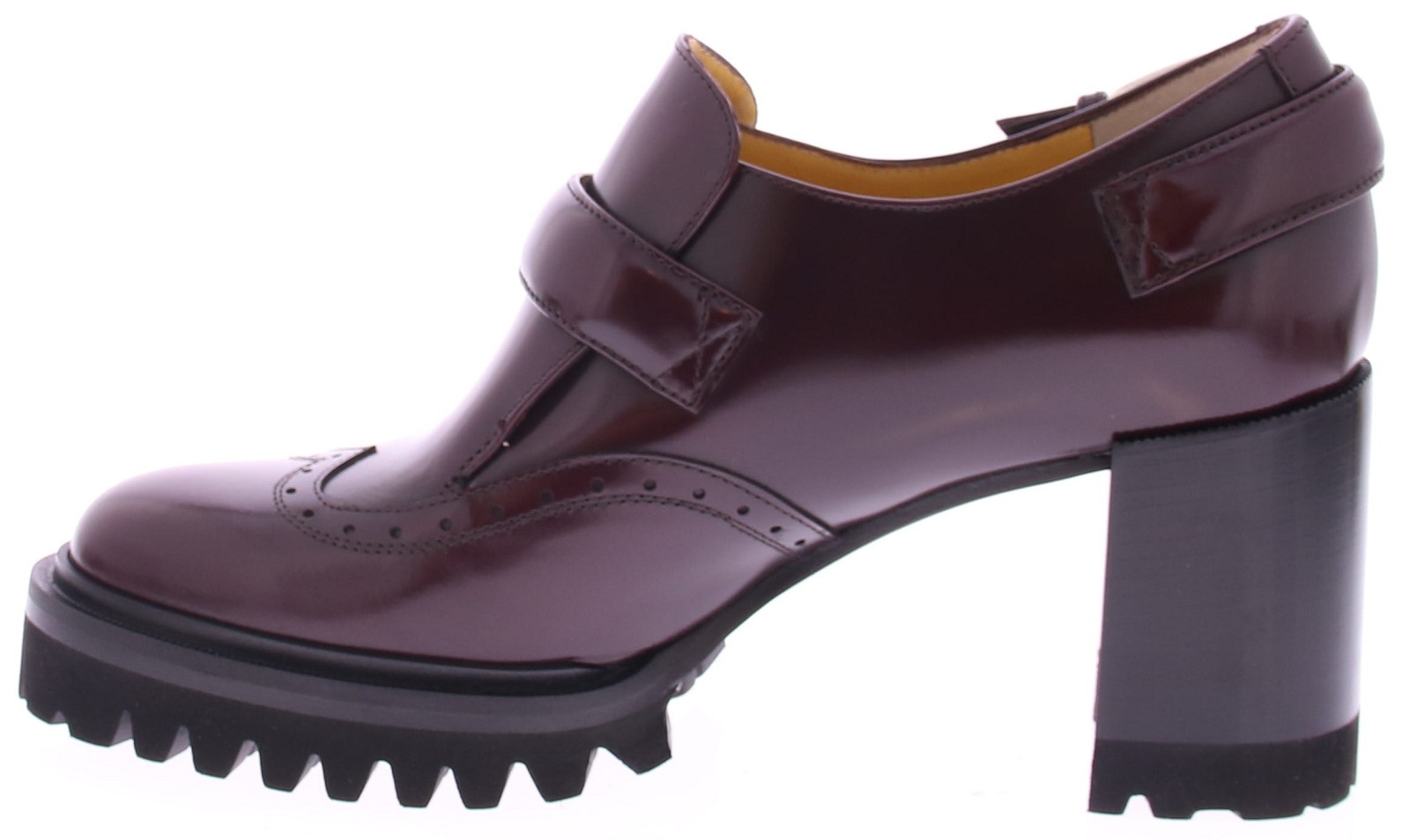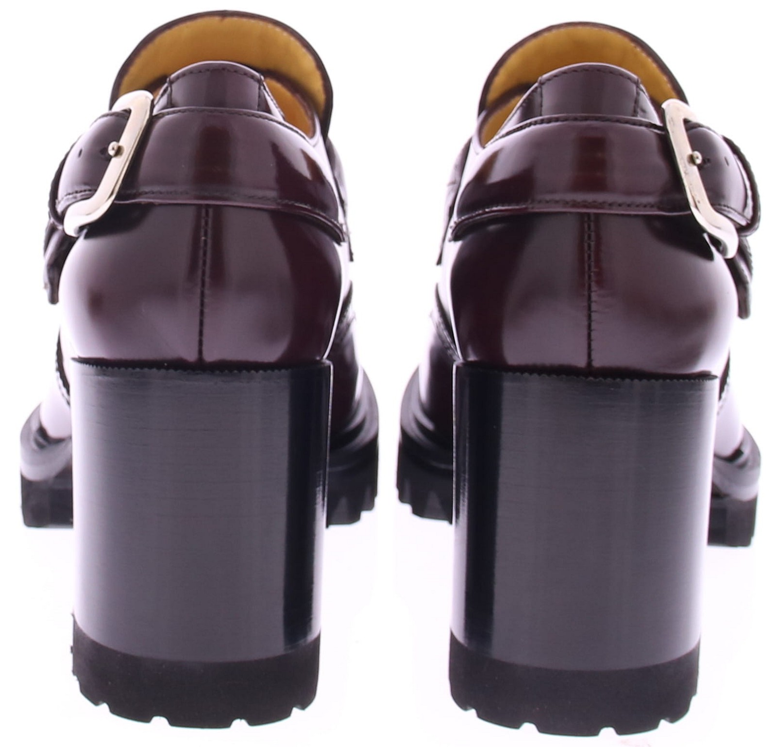 Bordeaux leather women's slip-on from Truman's. This stylish slip-on features two buckles as a nice detail at the heel and instep. The 2 cm platform sole and 7 cm heel ensure a stable walking experience. The thicker treaded sole gives this slip-on an extra stylish look and makes it suitable for various occasions.