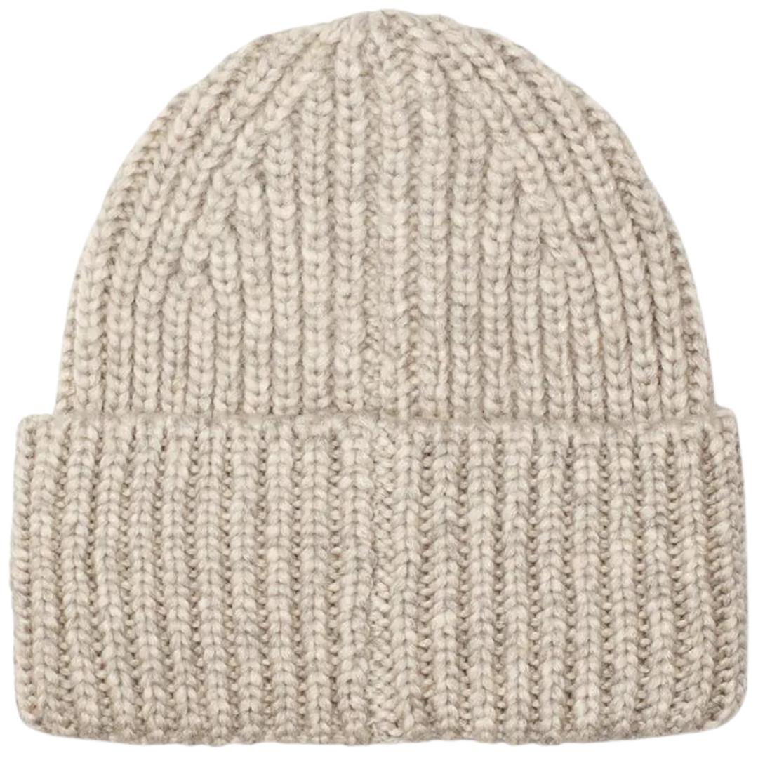 Light grey woolen women's hat from Ugg. The article name of this hat is 'Chunky Rib Beanie light grey'. The hat is half folded with the Ugg logo on the front. The hat can be worn as a beanie. Goes well with the matching scarf article number 39578