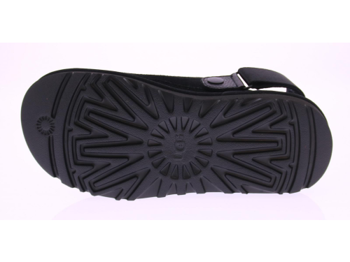 Black suede men's clog from Ugg. This Goldencoast clog II features a black suede exterior, soft fabric lining, and a super-soft footbed. The heel strap with a fabric logo can also be worn forward.