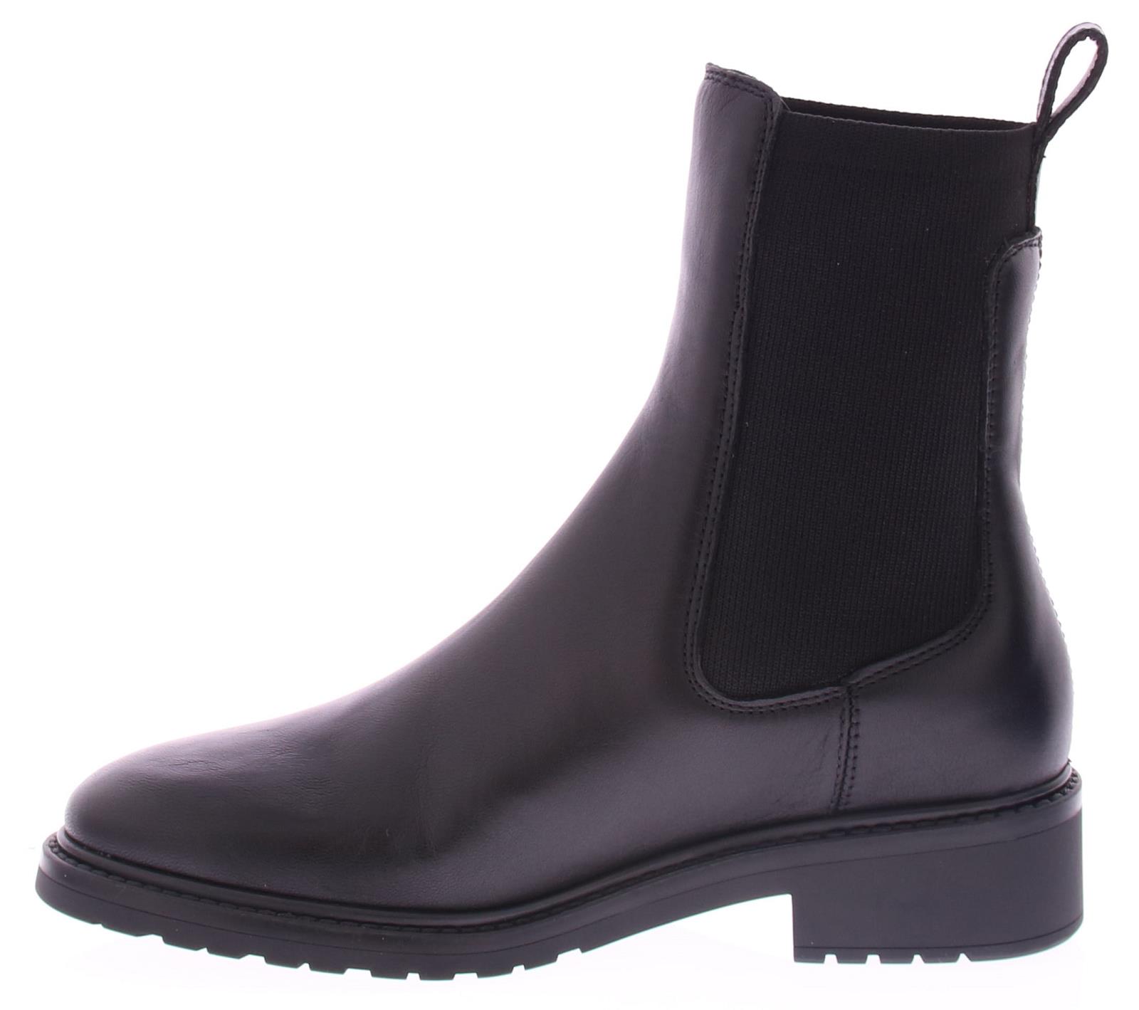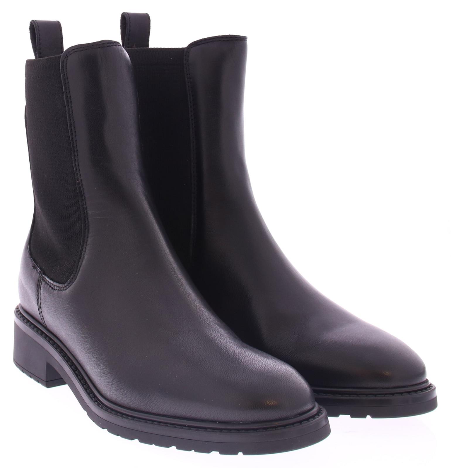 Black leather ladies Chelsea boot by Unisa. Beautiful basic boot with an elastic insert on both sides. The fine oval last is feminine and timeless. The rubber sole has a fine profile and the heel is 2 cm high.