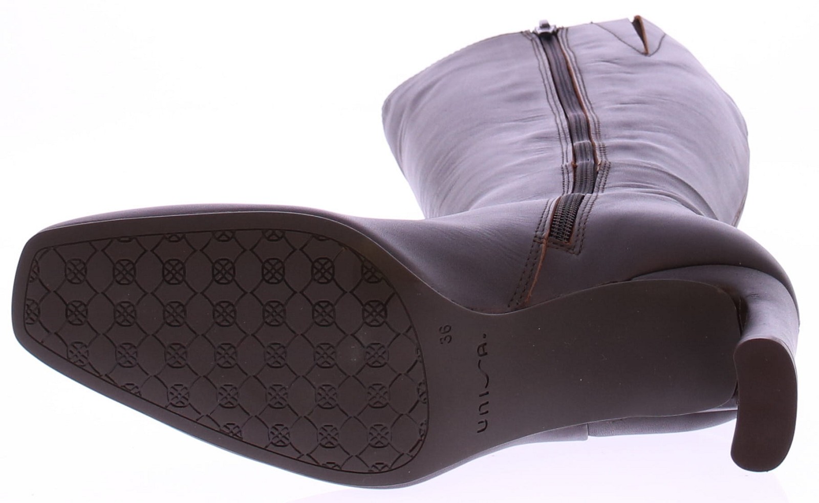 This dark brown leather tall women's boot from Unisa is the perfect addition to your wardrobe. The elegant design, combined with the square heel, gives you a refined look. The graceful 8cm heel adds a touch of flair, while the thin rubber sole ensures optimal comfort and grip. Whether you're heading to the office or out for the evening, this boot always adds the perfect finishing touch.