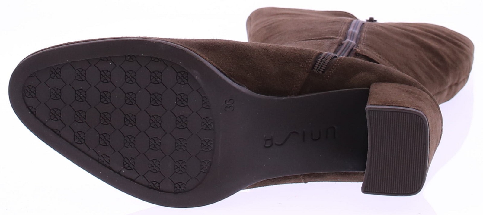 These dark brown suede tall boots from Unisa are a perfect choice for any fashion-conscious woman. Featuring a 6cm covered block heel and a small platform sole, these boots offer exceptional comfort. Thanks to their timeless design and dark brown color, they pair effortlessly with both casual jeans and a chic dress. Ideal for both everyday and formal occasions.