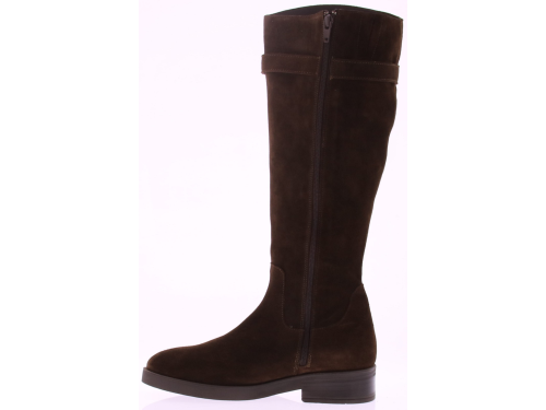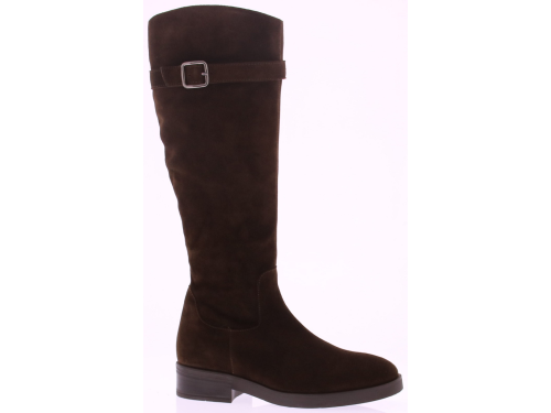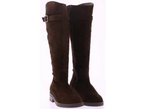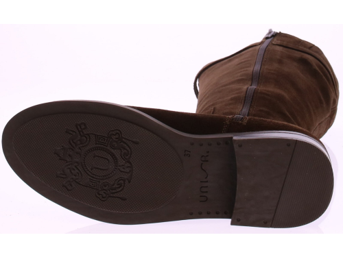 This dark brown suede tall boot from Unisa is a perfect choice for any fashion-conscious woman. With a sleek, smooth finish and a stylish buckle strap at the top, this boot exudes sophistication. The flat sole with a 2cm heel ensures all-day comfort, while the minimalist design offers versatility for both casual and formal occasions.