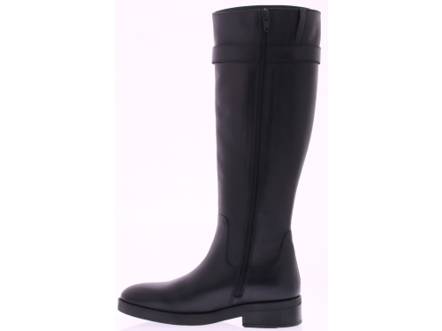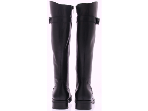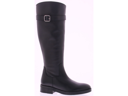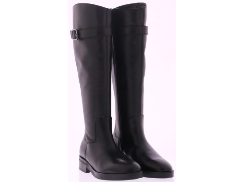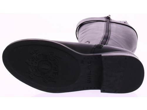 This black leather tall boot from Unisa is a perfect choice for any fashion-conscious woman. With a sleek, smooth finish and a stylish strap with a silver buckle detail at the top, this boot exudes sophistication. The flat sole with a slight heel ensures all-day comfort, while the minimalist design offers versatility for both casual and formal occasions.