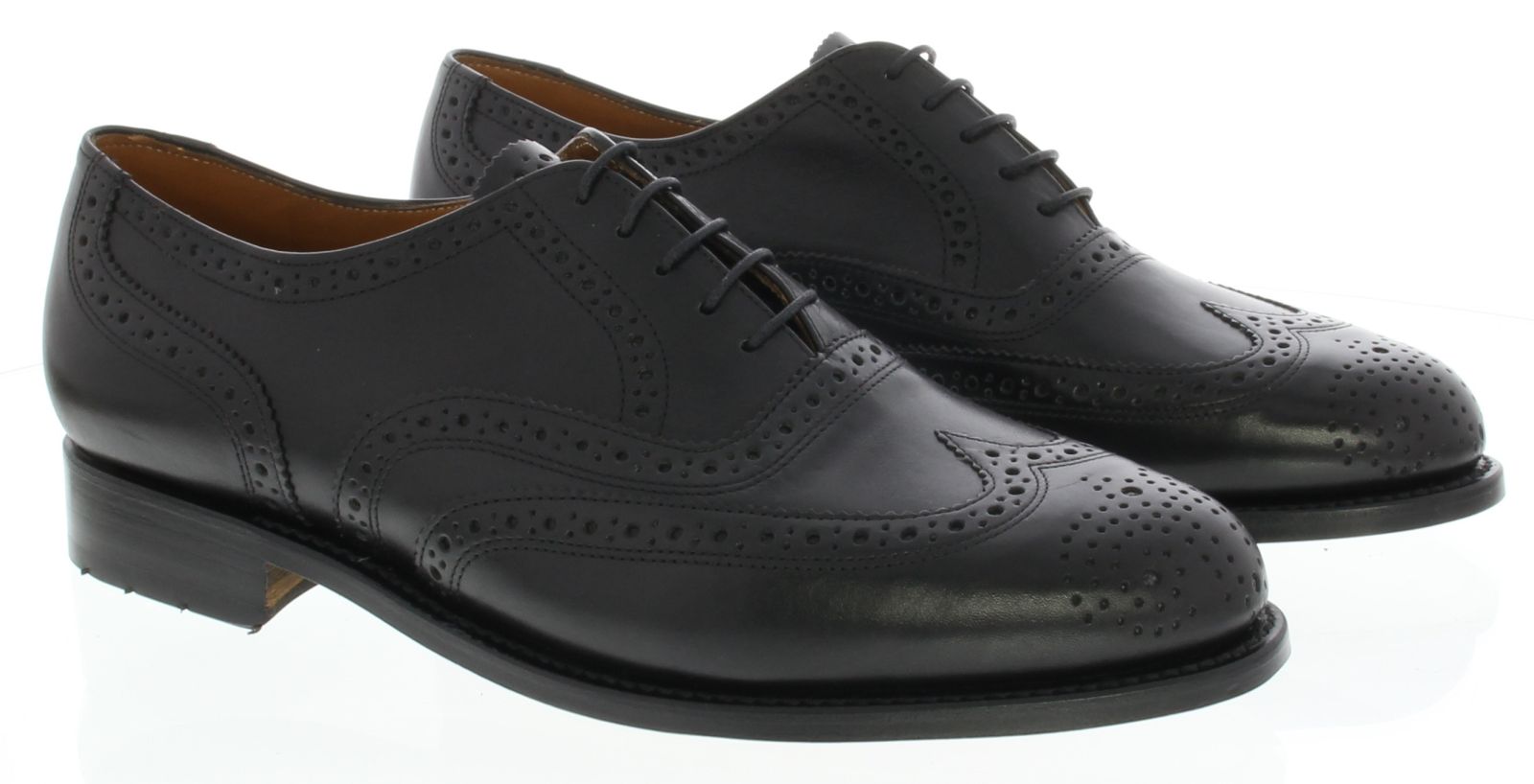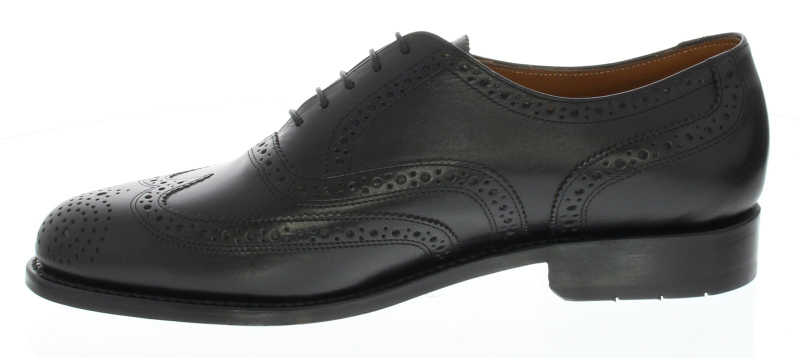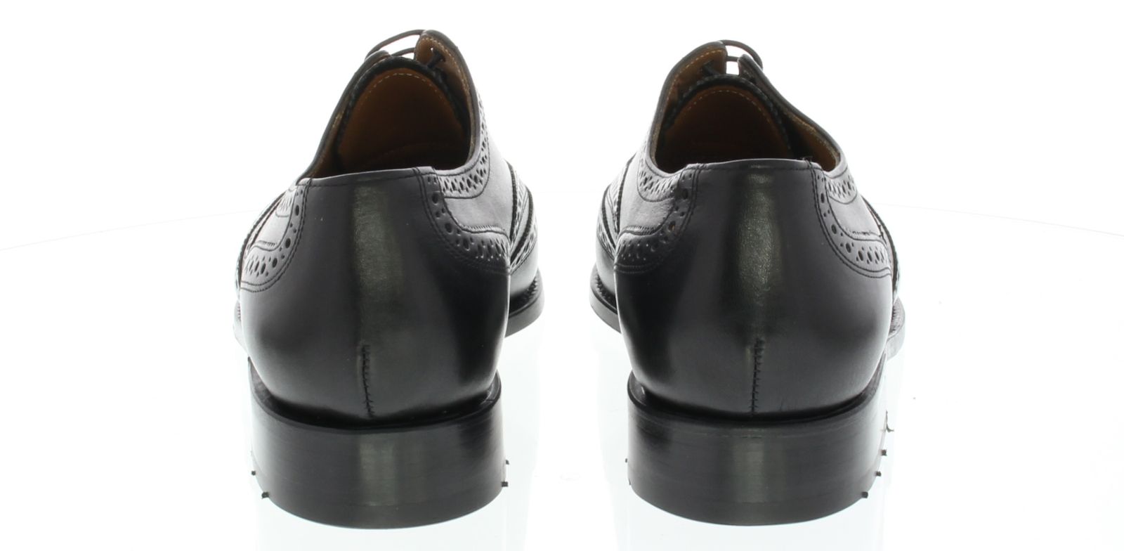 Black leather men's lace-up shoe from Van Bommel, model Olda 03.16. This classic brogue is made of smooth calf leather and has a full leather lining for breathable comfort. The leather sole and H-shaped last ensure a comfortable fit and a neat finish. A timeless style that pairs perfectly with both business and formal outfits.