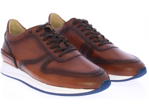 Cognac leather men's sneaker by Van Bommel. This sneaker is made on a G1/2 width and is fully leather lined. The insole is removable.