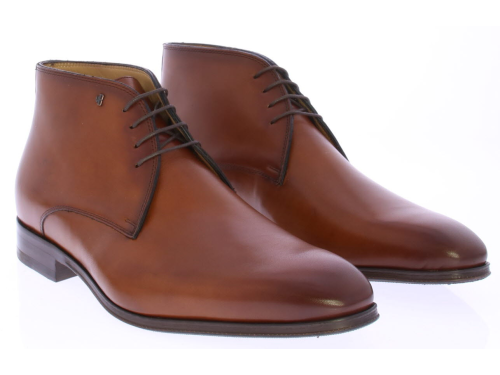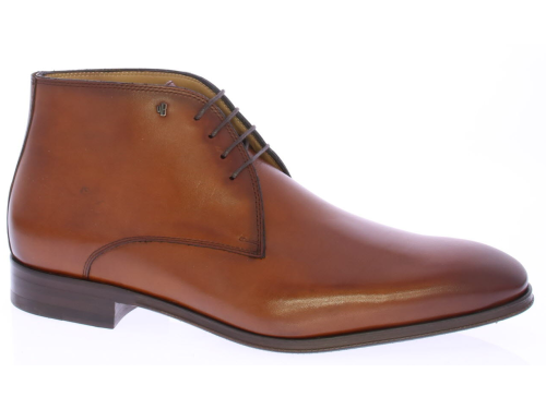 Cognac leather men's ankle boot by Van Bommel. The shoes have a calf leather upper in a warm cognac shade. The width of the last is H. The lining is leather and the sole is leather with rubber.