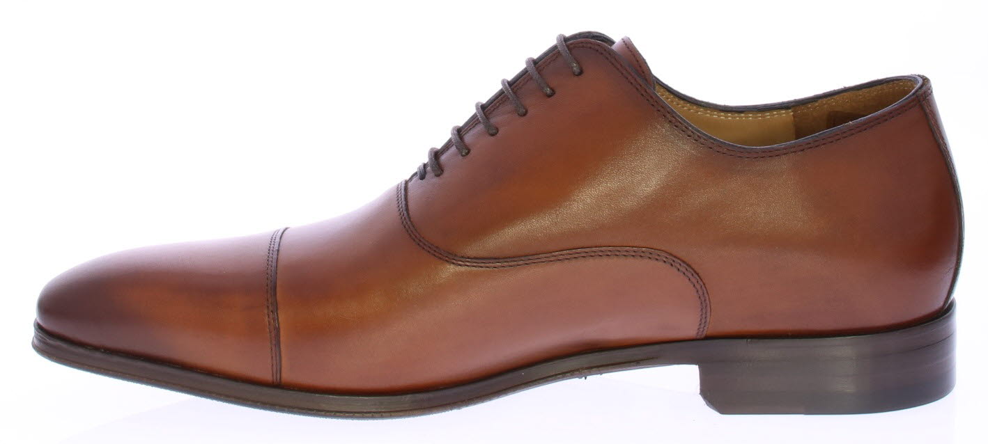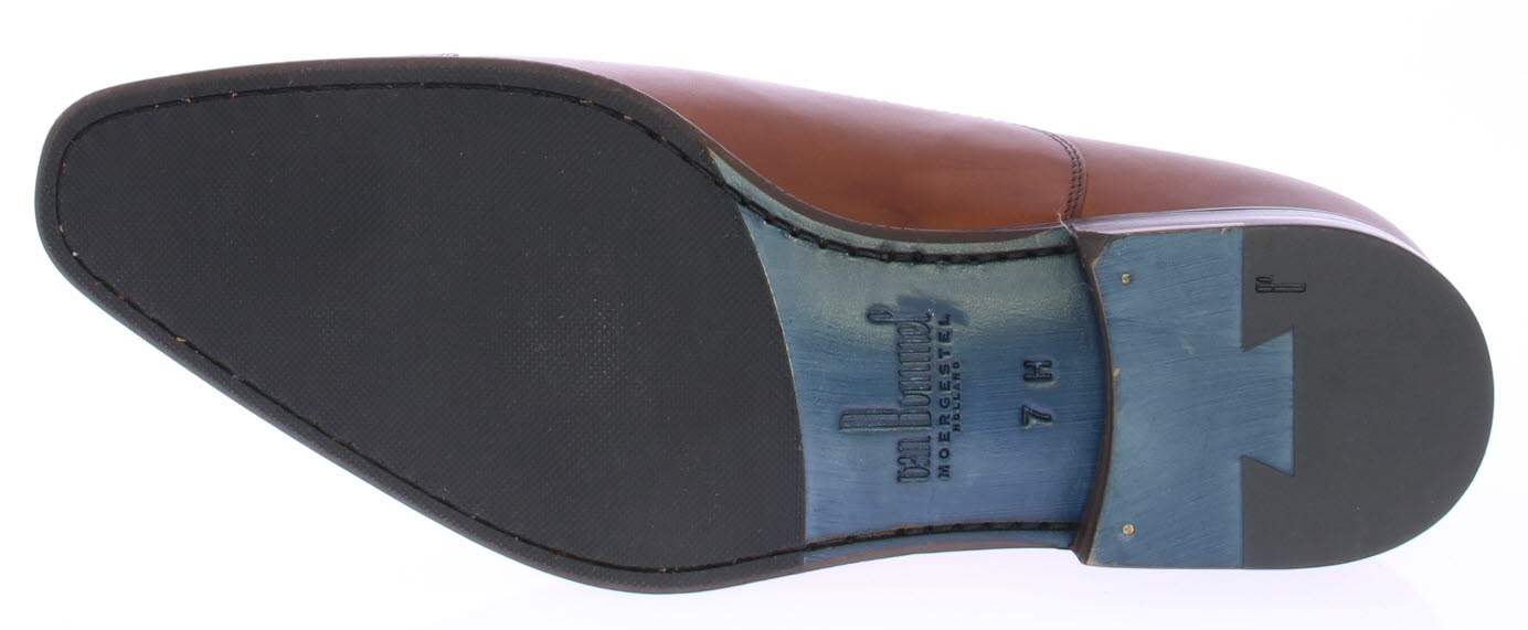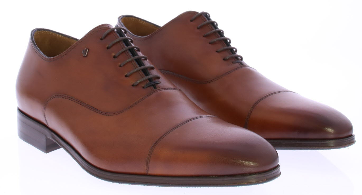 Cognac leather men's lace-up shoe with toe seam by Van Bommel. The shoes have a calf leather upper in a warm cognac shade. The width of the last is H. The lining is leather and the sole is leather with rubber.