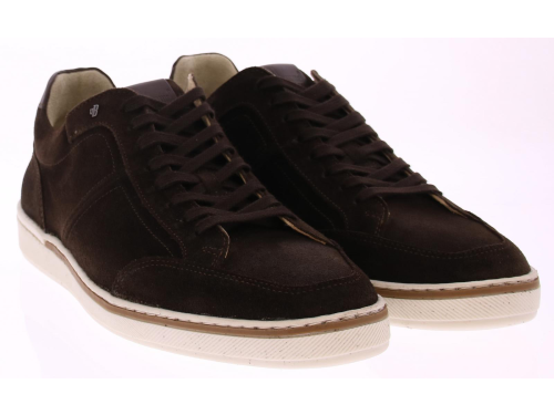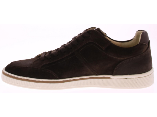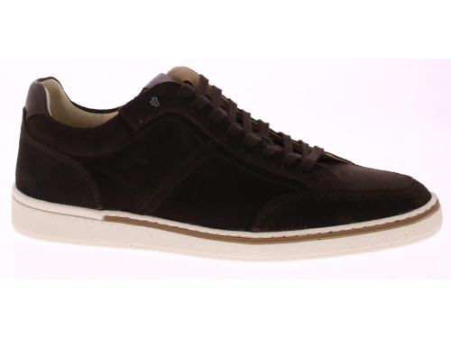 Dark brown suede men's sneaker by Van Bommel. The lining is leather and the sole is rubber. The insole is removable. This shoe is made in an H-width.