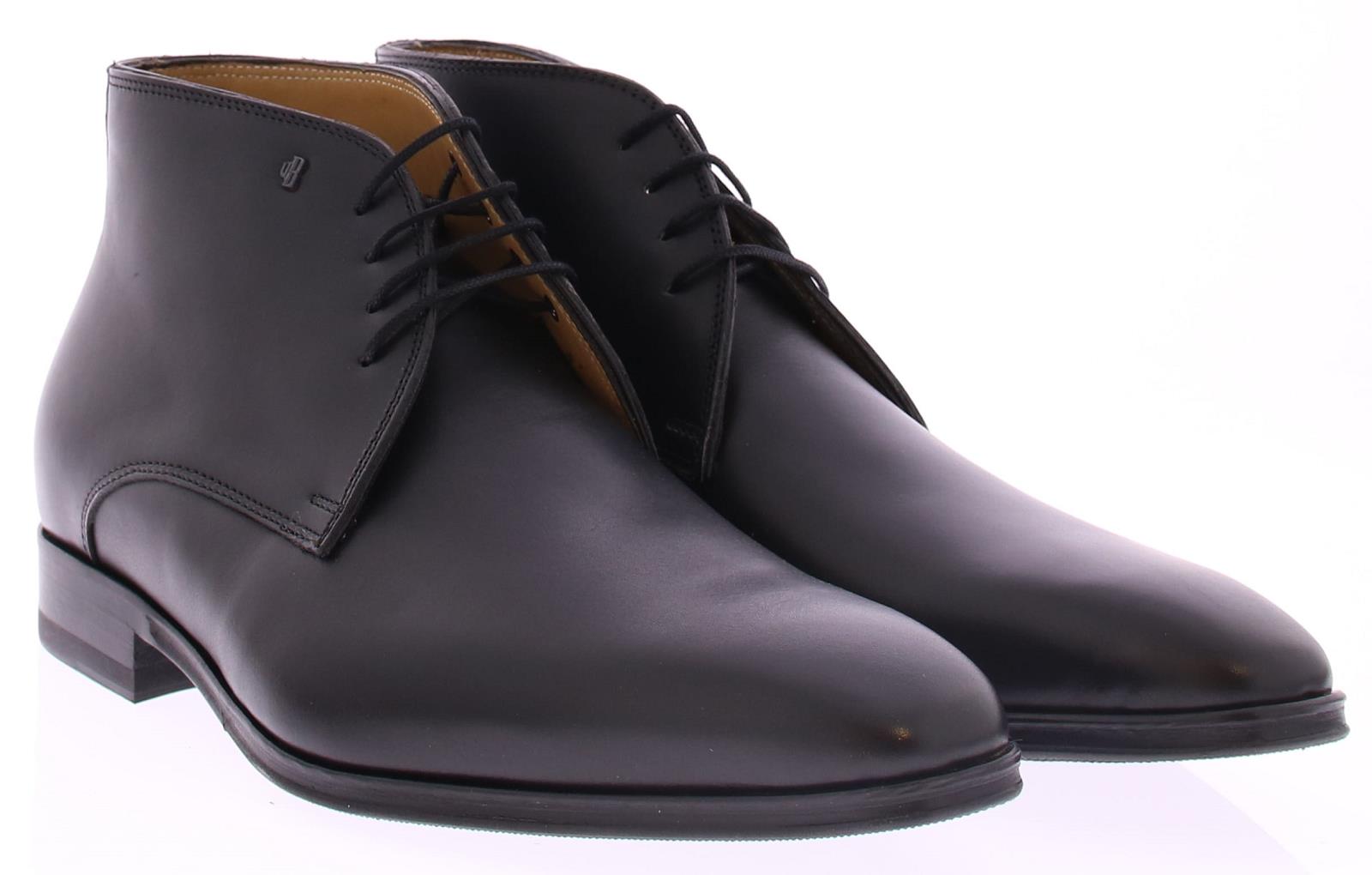 Men's lace-up boot by Van Bommel in black calf leather made on the H last. Article RAFFA 05.01. The shoe has a leather lining and rubber sole.