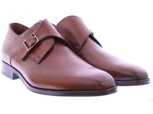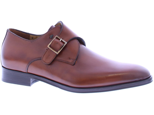 Men's buckle shoe from Van Bommel, item Raffa 06.00. The shoe is made on the H last and has a dark cognac calf leather upper. The lining is leather and the sole is rubber.