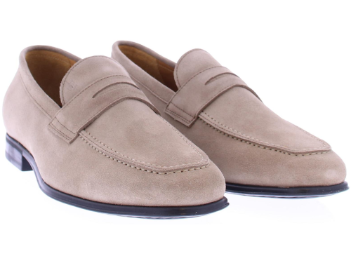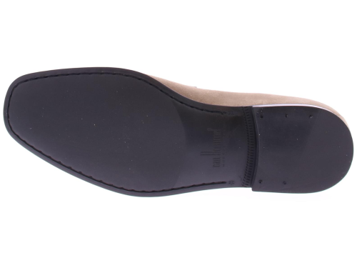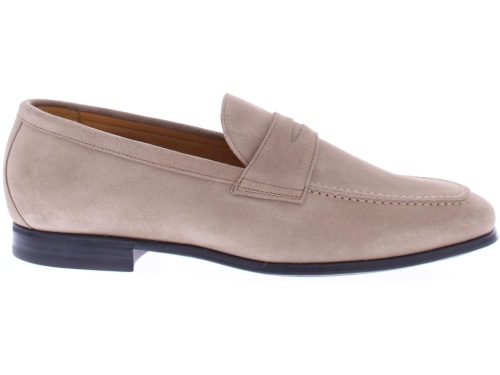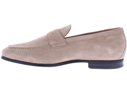 Men's van Bommel loafer made of taupe suede on a black rubber sole. The shoe is leather lined and is made in width G1/2.
