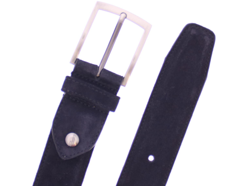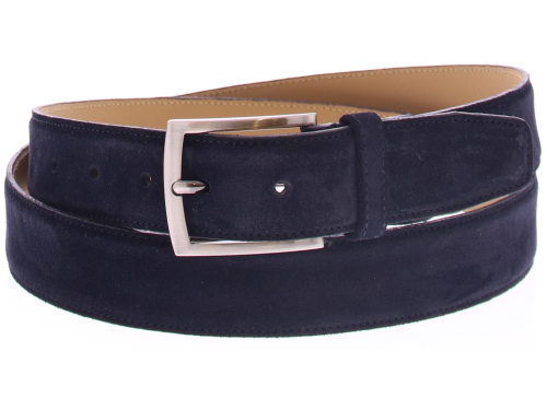 Dark blue suede men's belt with a slim buckle, a timeless design. This belt adds a touch of class to any outfit. The belt is leather lined and can be shortened on the buckle side.